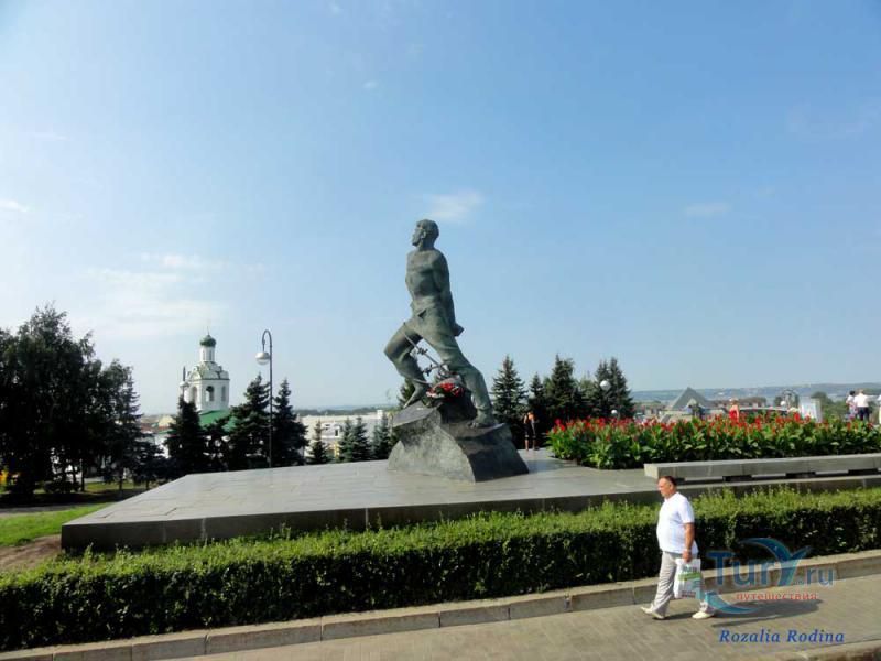 Памятник Мусе Джалилю в Казани установлен 3 ноября 1966 года, в год празднования 60-летия со дня его рождения. Муса Мустафаевич Залилов - Герой Советского Союза, лауреат Ленинской премии, поэт-патриот, участник антифашистского подполья, казнён в нацистской тюрьме в 1944 году. Памятник расположен у южного фасада Казанского кремля, напротив зданий Городской думы и Национального музея Республики Татарстан, 25 августа 1994 года рядом с памятником Мусы Джалиля была возведена стенка, из гранитных блоков. На блоках стилизованные изображения ласточек и три цитаты из стихотворений Мусы Джалиля на татарском и русском языках. Гранитная стена частично полирована, частично лишь слегка обработана, установлена в память о соратниках Мусы Джалиля, и в связи с 50-летием со дня их гибели в тюрьме Плётцензее, на гранитной стенке сделан посвящённый им барельеф. Он представляет собой портреты десяти членов татарского подполья. В 1974 году памятник Мусе Джалилю был включён в список памятников культуры РСФСР, подлежащих охране как памятники государственного значения.