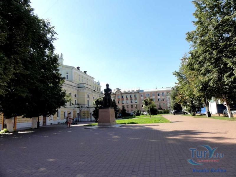 Памятник Н.А.Добролюбову расположен в городе Нижнем Новгороде, в сквере на площади Театральной, с правой стороны от здания академического театра драмы. Здесь поблизости находился дом, в котором в 1836 году родился Добролюбов Н. А. Русский литературный критик, публицист, революционный демократ Добролюбов был также поэтом-сатириком, остроумным пародистом, душой выходившего при "Современнике" литературного приложения "Свисток". Короткая жизнь Добролюбова сопровождалась большой литературной активностью. Он много и легко писал. Некоторые его произведения, направленные против Николая I, остались не напечатанными при жизни.
