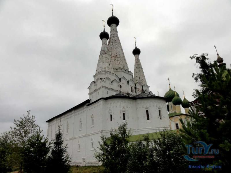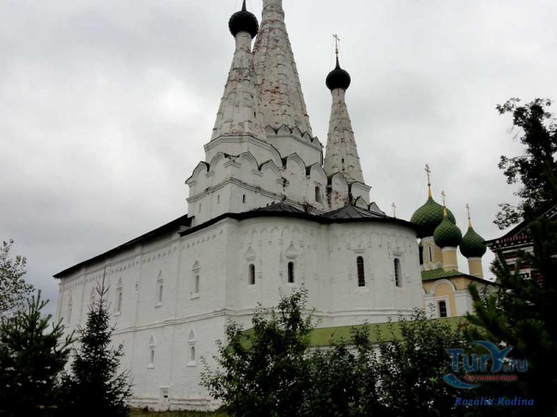 После польского разорения в 1628 году на территории Алексеевского монастыря в Угличе сооружена Успенская "Дивная" церковь. Необыкновенна и красива с дивными, устремленными ввысь шпилями, церковь гармонично вписалась в монастырский ансамбль. В народном названии храма точно выразилось отношение к прекрасному и совершенному творению зодчего. Выдающийся памятник русской шатровой архитектуры поражает устремленными ввысь шатрами и их архитектурным декором. Отсутствие в трапезной кухни, подсобных помещений наводит на мысль о том, что "Дивная" предназначалась не для обычных трапез, а для торжеств. Безвестный зодчий, возводя "Дивную", строил храм-памятник, подобно собору Василия Блаженного в Москве, церкви Вознесения в Коломенском. Лучший вид на «Дивную» церковь — с северо-востока. Перед взором полностью открывается все сооружение. Примыкающая к церкви ограда с воротами относится к концу XVIII века.