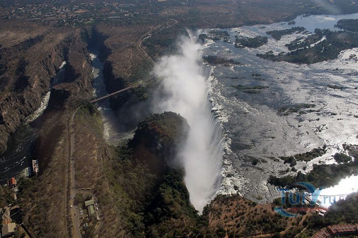 Водопад Виктория – великолепный шедевр природы, расположен на реке Замбези в Южной Африке, на границе Зимбабве и Замбии. Ширина водопада примерно 1800 метров, а высота 108 метров. Река Замбези создаёт гремящий водопад, вода которого низвергается в узкую расщелину шириной 100 метров. При этом образуется водяной завес, протяженностью почти 2 километра. Во время полноводья на реке Замбези, пять миллионов литров воды каждую секунду обрушиваются в пропасть. При этом образовываются облака пара, которые можно наблюдаться на расстоянии 40 километров от водопада. В брызгах водопада образуются восхитительные радуги, поднимающиеся на высоту до 300 метров – лунные радуги. Открыт водопад был в 1855 году английским врачом и миссионером Дэвидом Ливингстоном. Он назвал его в честь королевы Англии – Виктория. Местные жители называли его Мосио-ао-Тунья – «Гремящий дым» и очень боялись к нему приближаться. Отважного Ливингстона сопровождало 300 воинов одного из местных племён, но подойти к водопаду рискнули только двое из них. На протяжении нескольких лет после открытия водопад не посещался людьми, пока в 1905 году сюда не провели железную дорогу. Сейчас это одна из самых посещаемых достопримечательностей и любимое развлечение многих туристов из разных уголков мира. Водопад Виктория входит в список Всемирного наследия ЮНЕСКО. Местные жители, перестав его бояться, стали предлагать множество экскурсий к водопаду. Здесь можно наблюдать тонны гремящей воды с высоты, пролетая прямо над водопадом на вертолёте. Кроме того, для отчаянных туристов предлагаются прыжки с вершины водопада в узкую расщелину. Ещё одно увлекательное развлечение на Виктории - купание в естественном бассейне, который от бездонной пропасти отделяет узкая перемычка. Это место на вершине водопада называют «Дьявольским бассейном» и многие смельчаки решаются покупаться в нём и сделать головокружительные снимки. Это возможно сделать лишь в сухой сезон - с сентября по декабрь, когда уровень воды в реке сильно падает. В остальное время Водопад Виктория – это великолепное природное чудо, поражающее воображение путешественников своей мощью и величием.