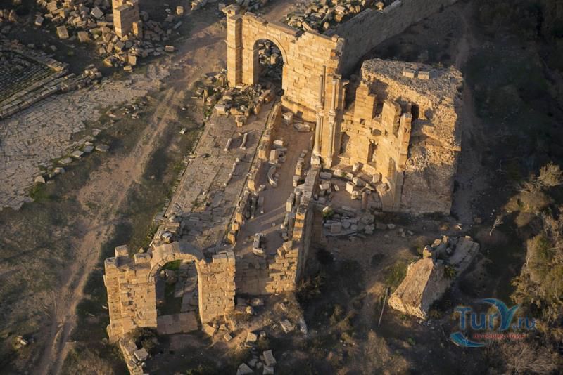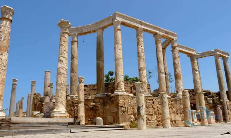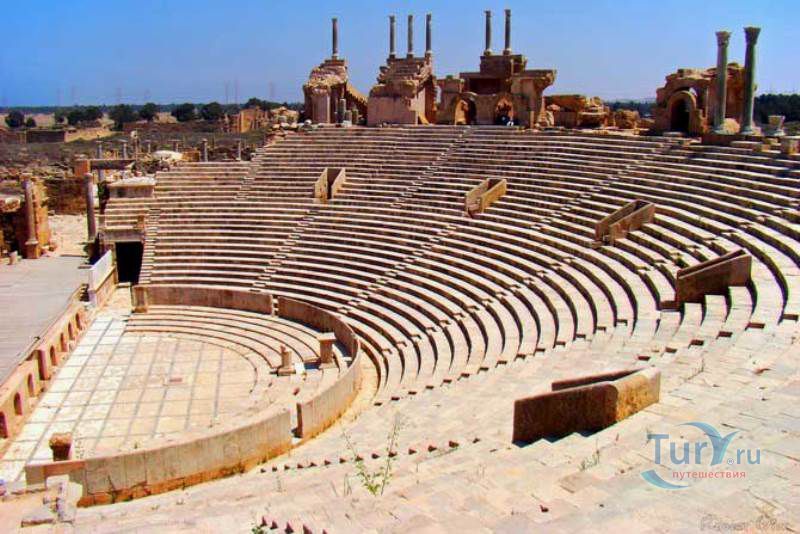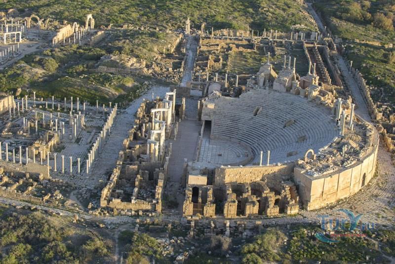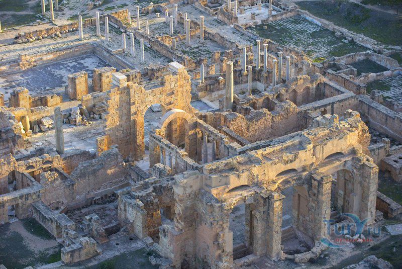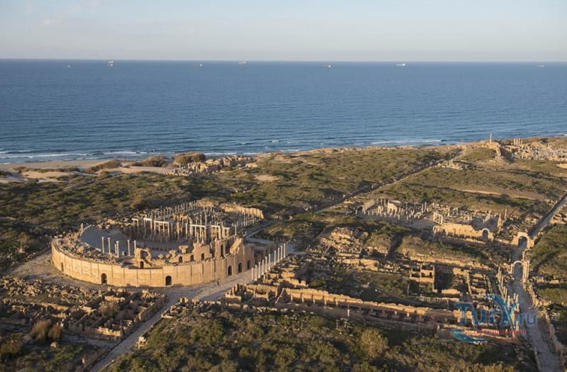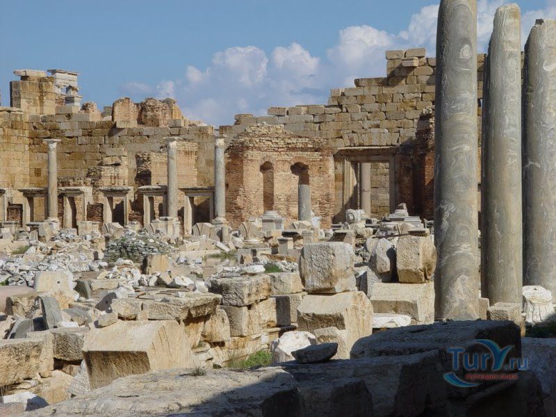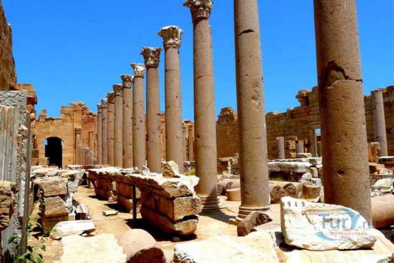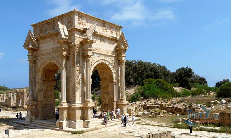 Лептис Магна - превосходно сохранившийся римский город у устья реки Вади Лебда в 120 км к востоку от Триполи. В давние времена был промежуточным портом на торговом пути финикийцев в этой части континента, а к VI веку до н. э. управлялся Карфагеном. Среди самого привлекательного - Триумфальная Арка Септима Севра, Форум, Базилика с её орнаментальными начертаниями и многочисленными скульптурами, полукруглый Нимфеум и Термы Адриана. Изящная улица с колоннами соединяет Термы с бухтой. Впечатляет 70-метровый в диаметре амфитеатр, с которого открывается вид на город во все направления. Римский Круг, на восточной стороне города, построен в форме подковы и точно повторяет линию побережья. Толомея (Птоломея) - изысканно украшенный Эллинский Дворец является основной достопримечательностью этого древнего города. Постройка относится к I веку до н. э. с более поздними, I века н.э., пристройками. Улица Памятников, идущая с юго-запада на северо-восток через северный район, была главной артерией города и поэтому на всём своём протяжении украшена фонтанами, портиками, гравюрами и скульптурами. Сирена - Храм Аполлона, одно из самых древних зданий города, воздвигнутое в VII веке до н.э. с более поздними пристройками и с надписями имен римских священников по обеим сторонам входа. У главного алтаря при входе - дренажное приспособление, по которому стекала кровь жертвенных животных. Фонтан Аполлона расположен сразу за Храмом. Тут же, предположительно императором Трояном в 98 г. н.э. были построены Великие Термы, но после того, как они были разрушены во время Еврейского погрома, в 119 г. н.э. их восстановил император Андриан. Здание интересно своими изысканными украшениями, мраморными стенами и полами, мозаиками и удивительными сводами крыши. Капитолий, построенный уже в конце Эллинского периода, был превращен римлянами в храм, где молились Юпитеру, Юноне и Минерве. По сторонам улицы Кариатид, идущей в восточном направлении от Агоры, когда-то располагалось множество скульптур на пьедесталах. Сейчас они валяются на земле и безвозвратно разрушаются. На самой улице расположен изящный дом Ясона Магнуса - одного из священников храма Аполлона. В пределах городских стен расположены Театр, Бани, Главная улица и развалины Византийского Дворца. Вокруг - многочисленные церкви: Церковь Двойных Стен, Восточная Церковь V века н. э. с колоннами из зеленого мрамора, Центральная Церковь и Западная Церковь. В центре старого города - музей, в котором выставлены некоторые Византийские мозаики и скульптуры.