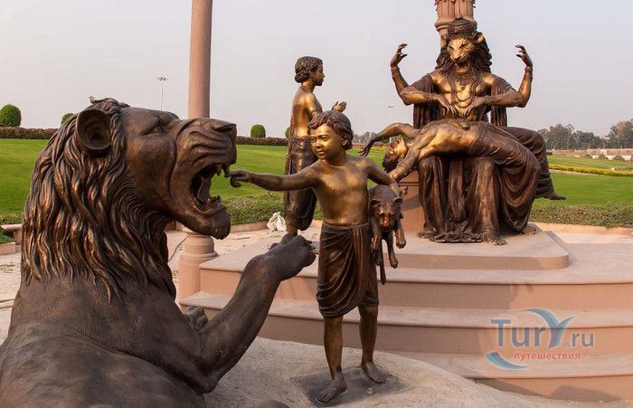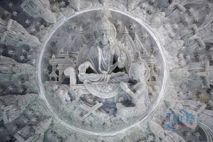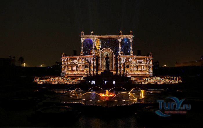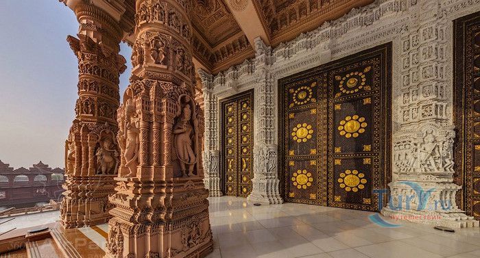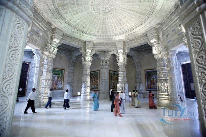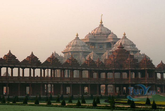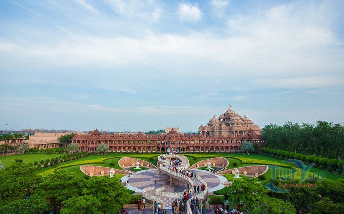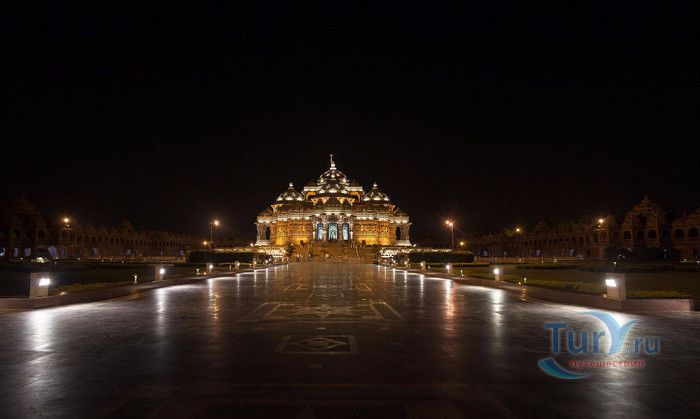 Храмовый комплекс Сваминараян Акшардхам расположен в Индии, в Нью-Дели, на берегу реки Ямуна. Строительство храма велось с 2000 по 2005 год, официальное открытие состоялось 6 ноября 2005 года, сразу после которого Сваминараян Акшардхам был внесен в книгу Рекордов Гиннеса как самый большой индуистский храм в мире. На строительстве Обители Бога были задействованы около 11000 строителей и ремесленников из разных стран мира, стоимость проекта составила около полумиллиарда долларов США, все деньги были собраны за счёт добровольных пожертвований. Сваминараян Акшардхам расположен на территории площадью более 10 гектаров, помимо главного храма, посвящённого Бхагавану Сваминараяну (основоположнику религиозного течения Сваминараян в индуизме), в состав комплекса входят культурный центр с экспозиционными залами, большой парк с садами, искусственными озёрами, каналами и музыкальным фонтаном. "Сердцем" комплекса является главный храм Мандир Акшардхам, высота которого 42 метра, ширина - 94 метра, длина - 106 метров. Здание украшают девять куполов, 234 резных колонны и 20000 фигур (мурти), изображающих сюжеты из индийской мифологии. Отделка храма выполнена вручную, фасад построен из розового песчаника, в оформлении интерьера использовался белоснежный каррарский мрамор. Внутреннее помещение храма условно разделено на 9 тематических зон, посвящённых Бхагвану Сваминараяну и его последователям. В залах установлены их статуи, самая большая, высотой 3,5 метра - статуя Сваминараяна. В трёх выставочных залах посетители имеют возможность познакомиться с тысячелетней историей и традициями Индии, постулатами индуистской религии, посмотреть фильм о семилетнем паломничестве Сваминараяна. Экспозиции оформлены с применением самых современных технологий, световых и звуковых спецэффектов. Каждый день с наступлением темноты на территории Акшардхама посетители могут увидеть грандиозное лазерное шоу, гвоздём программы которого является светомузыкальный фонтан. Он состоит из восьми цветков лотоса, расположенных внутри огромной чаши, размер которой 91х91 метр. Вокруг фонтана построен амфитеатр с местами для зрителей. Посетители также могут прогуляться по большому парку, на территории которого созданы места для отдыха, есть кафе и сувенирные магазины.