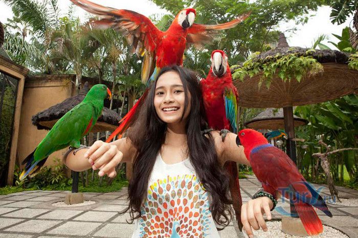 Парк Птиц Бали расположен в Индонезии, на острове Бали, в 10 км от города Денпасар. Территория парка площадью 2 гектара разделена на 7 тематических областей, в которых воссозданы природные места обитания птиц - "уроженцев" Индонезийского архипелага, Латинской Америки, Африки и Австралии. Всего в парке обитают более 1000 птиц, представленных 250 видами, в числе которых более 40 видов, находящихся под угрозой исчезновения. Посетители парка имеют уникальную возможность побродить по туманным джунглям Суматры и Папуа - областям парка, в которых обитают экзотические птицы золотой фазан, чёрный индийский ястреб, попугаи, венценосный голубь, птица-носорог, шлемоносный казуар, райские птицы и многие другие. Южную Америку в парке представляют редкие виды попугаев Ара, туканы, венесуэльский амазон, каравайка (птица семейства ибисовых), для которых в парке воссоздан участок мангровых зарослей с тенистыми водоёмами. Птицы из Южной Африки (африканский журавль, серый попугай, способный имитировать человеческий голос, смеющаяся кукабара, птица-носорог, фиолетовый турако) обитают в естественных для них природных условиях африканской саванны. Из представителей пернатых острова Ява в парке можно увидеть яванского хохлатого орла, яванского ястреба, зондскую сплюшку, усатого попугая, сороку-малиновку, яванского зяблика. Обитатели туманных облачных и тропических влажных лесов Борнео прекрасно чувствуют себя в специально построенных для них просторных вольерах. Гости парка могут увидеть гривистого голубя, фазана Бульвера, большого аргуса (одного из самых крупных представителей фазановых), а также представителя семейства крыланов - летучую лисицу. В парке обитает занесенный в Красную книгу, находящийся под угрозой исчезновения Балийский скворец. Редкая и необычайно красивая птица (белое оперение с чёрной окантовкой по краям крыльев и на хвосте, с синим ободком вокруг глаз) обитает только на острове Бали, в мире их насчитывается не больше 200-250 особей, некоторые из которых являются обитателями Парка птиц Бали. В рамках сохранения этого редкого вида в парке разработана программа по разведению Балийского скворца. В парке проводятся специальные мероприятия для детей и взрослых, посетители могут принять участие в кормлении птиц, сфотографироваться с экзотическими видами пернатых, поужинать в ресторане под открытым небом и приобрести на память сувениры в магазине парка.
