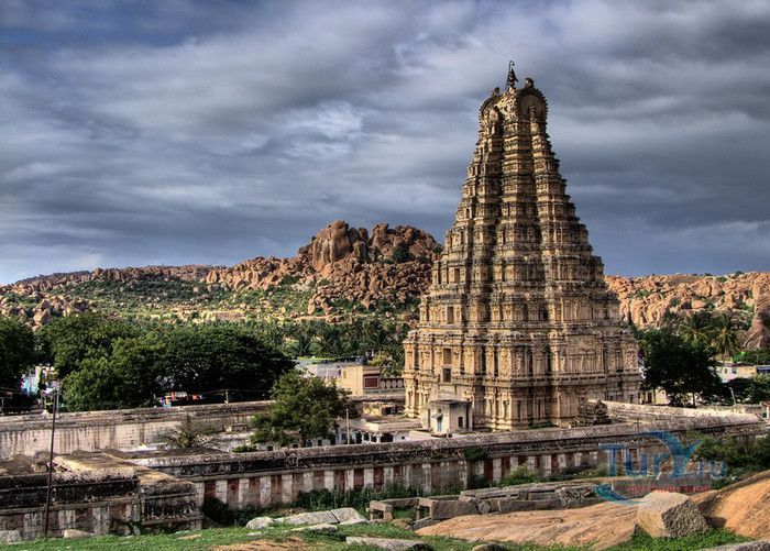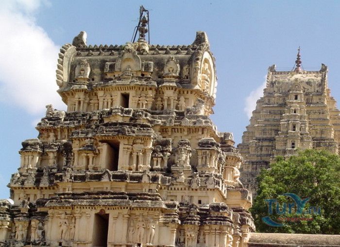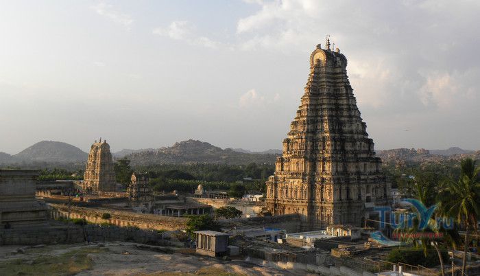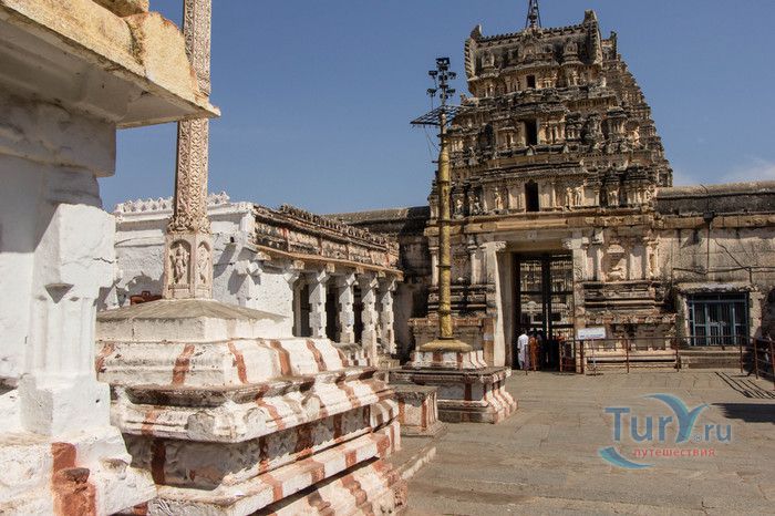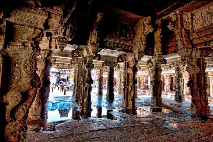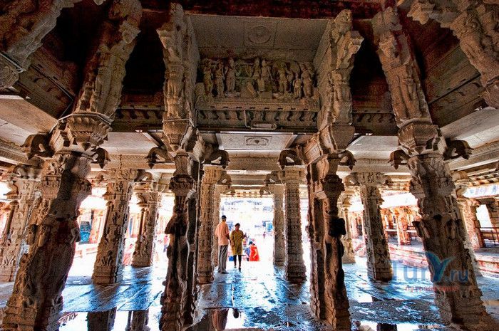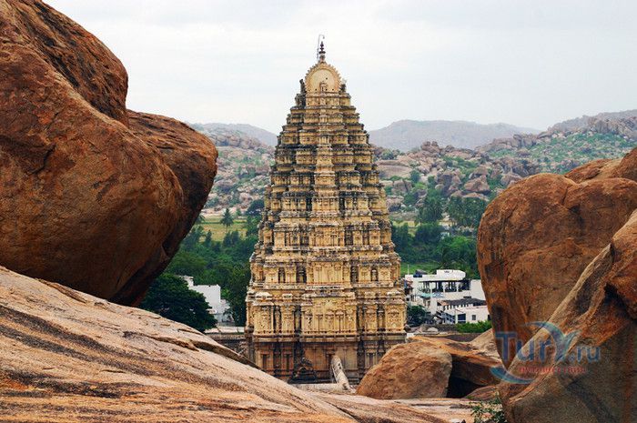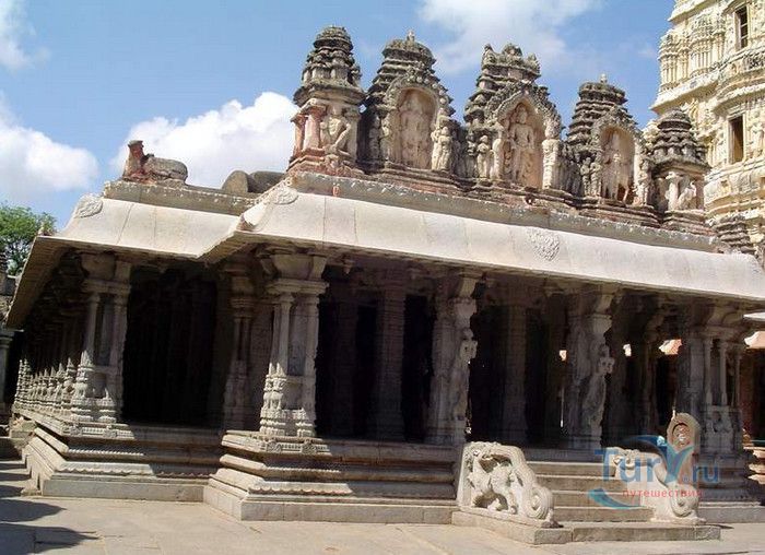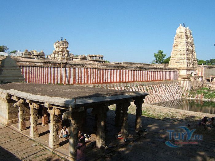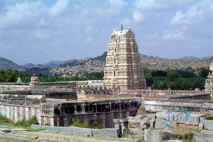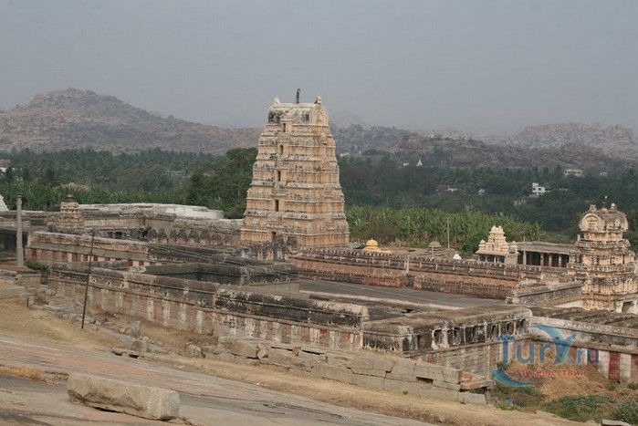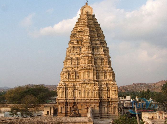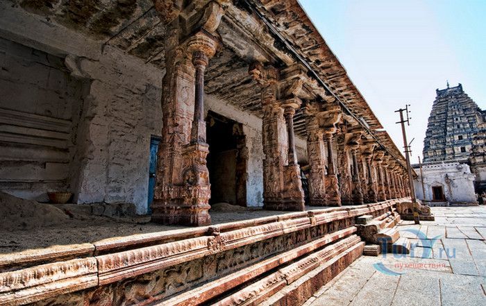 Храм Вирупакши расположен в Индии, в штате Карнатака, в деревне Хампи. На берегу реки Тангабарга, посреди руин древнего города Виджаянагара, бывшей столицы индуистской Виджаянагарской империи, возвышается храм Вирупакши - единственное святилище империи, сохранившееся после падения города и превращения его в руины. Храм посвящён Шиве, который в районе реки Тунгабхадры известен под именем Вирупакши. Именно он считается мужем богини Пампы, которая покровительствовала местному населению и делала воды реки чистыми и священными. Точная дата строительства храма неизвестна, археологами установлено, что первое святилище в этом месте было построено ещё задолго до возникновения Виджаянагарской империи. Некоторые строения датируются VII веком, самые ранние надписи с упоминанием Шивы, обнаруженные в храме, относятся к IX-X векам, есть сооружения времён империй Чалукья и Хойсала, но большая часть храма построена в период существования Виджаянагарской империи. В 1565 году империя пала, столица была полностью разрушена, чудом уцелел только храм Вирупакши, который, несмотря на господство мусульман, продолжал функционировать и принимать в своих стенах паломников, исповедующих индуизм. До наших дней храм сохранился в том виде, который он имел в XII веке. Храмовый комплекс Вирупакши состоит из основного храма, входных ворот, колонной аркады, небольших святилищ и внутренних дворов. Основной храм имеет два больших внутренних двора и колонный зал. Самая изысканная храмовая постройка - колонный зал Ранга Мандапа, построенный в 1510 году. Зал имеет 5 проходов, образованных 38-ю резными колоннами, его стены и потолок украшены яркими картинами из древних эпосов Рамаяна, Махабхарата и Пуран. В западной части комплекса расположено святилище Вирупакши, вход в него охраняют каменные статуи воинов-хранителей, внутри установлены идолы Вирупакши и богини Пампы. Главный гопурам (надвратная башня) высотой 50 метров состоит из девяти уровней, её фасад богато украшен резными барельефами. Через ворота можно попасть во внешний двор, на котором расположены второстепенные святилища. По узкому каналу вдоль террасы храма течёт река Тунгабхадра. Храм Вирупакши пользуется большой популярностью у верующих и туристов, ежедневно сюда прибывают паломники из разных уголков Индии и других стран. Среди множества праздников и фестивалей, проводимых в храме, следует отметить фестиваль с шествием храмовой колесницы, а самым крупным является свадебный фестиваль Вирупакши и Пампы, ежегодно празднуемый в декабре. С 1987 года храм Вирупакши является частью группы памятников Хампи, внесенных в список Всемирного наследия ЮНЕСКО.