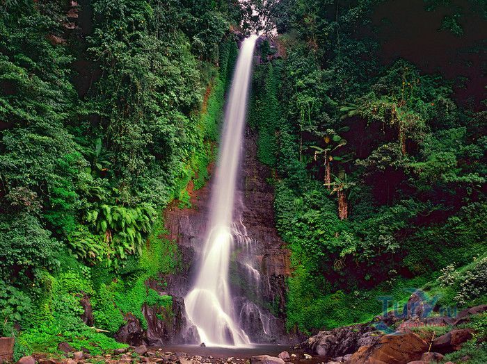 Водопад Гит Гит, один из самых посещаемых водопадов Бали, расположен в северной части острова, в 11 км на юг от города Сингараджа. Гит Гит считается одним из самых красивых и полноводных водопадов острова, вода практически отвесно падает с 40-метровой высоты, образуя у подножия скалы небольшой, но глубокий бассейн, в котором можно искупаться. Вода здесь довольно холодная, рискнувшие "принять ванну" ощущают эффект ледяного душа. Водопад находится в 800 метрах от деревни Гит Гит, расположен посреди тропического леса, добраться до него можно только пешком. Путь пролегает вдоль реки, на берегу которой раскинулись рисовые поля, кофейные и ванильные плантации. Через реку перекинуто несколько мостков, в некоторых участках тропа имеет крутые подъёмы и спуски, но в целом путь не вызывает никаких сложностей, везде расставлены указатели. Шум водопада слышен уже издали, в воздухе ощущается прохлада и свежесть. Зрелище обрушивающейся с большой высоты водяной лавины, сверкающих на солнце брызг и буйства зелени привлекает в эти места тысячи туристов. Для посещения водопад Гит Гит открыт с 1975 года, предприимчивые балийцы прямо у подножия водопада организовали продажу сувениров, украшений и специй.