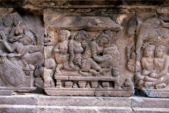 Храмовый комплекс Прамбанан расположен в Индонезии, в центральной части острова Ява, в 18 км от города Джокьякарта. Прамбанан ведёт свою летопись с VIII столетия, его основателем считают принца Ракаи Пикатана из династии Санджая. По замыслу принца, величием и роскошью индуистский Прамбанан должен был превзойти соседний буддийский храм Боробудур. Вплоть до X века Прамбанан достраивался и расширялся правителями Матарама (государства, существовавшего в VIII-X веках на территории Индонезии), в итоге комплекс стал насчитывать 240 больших и малых храмов. Прамбанан имел статус королевского храма, в нём проходили религиозные церемонии и жертвоприношения. В начале Х столетия центр Матарама был перенесен в восточную Яву, и Прамбанан оказался покинутым. В XVI веке из-за сильного землетрясения и извержения вулкана Мерапи большая часть комплекса была разрушена, руины некогда величественного сооружения постепенно поглотили джунгли. Лишь в 1930 году в Прамбанане начались масштабные реставрационные работы, которые продолжаются и по сей день. Религиозный комплекс имеет три зоны. Внешняя зона представляет собой открытое пространство, которое было огорожено массивными каменными стенами, ныне разрушенными. Археологи предполагают, что здесь в давние времена был большой сад для релаксации. Средняя зона состоит из четырёх ярусов и разделена четырьмя невысокими стенами. В этой зоне располагались 224 святилища, так называемые Candi Perwara (Хранители храмов), большинство из них лежат в руинах. Внутренняя зона содержит 16 храмов - 8 главных и столько же второстепенных. В центре комплекса расположены главные святыни Прамбанана - храм бога Шивы, к северу от него - храм Брахмы, на юге - храм бога Вишну. Эту троицу называют Лара Джонгранг, что означает "Стройная дева". Стены храмов украшены барельефами с изображением сцен из древних эпосов Рамаяна и Крешнаяна. Рядом с тремя основными храмами находятся святилища, посвящённые животным верховных богов - орлу Гаруде, на котором летает Вишну, быку Нанди - перевозчику Шивы и лебедю Ангсу, животному Брахмы. Прамбанан признан одним из самых красивых индуистских храмов в мире, входит в перечень наиболее посещаемых достопримечательностей Индонезии. В 1991 году археологический памятник Прамбанан внесен в список Всемирного наследия ЮНЕСКО.