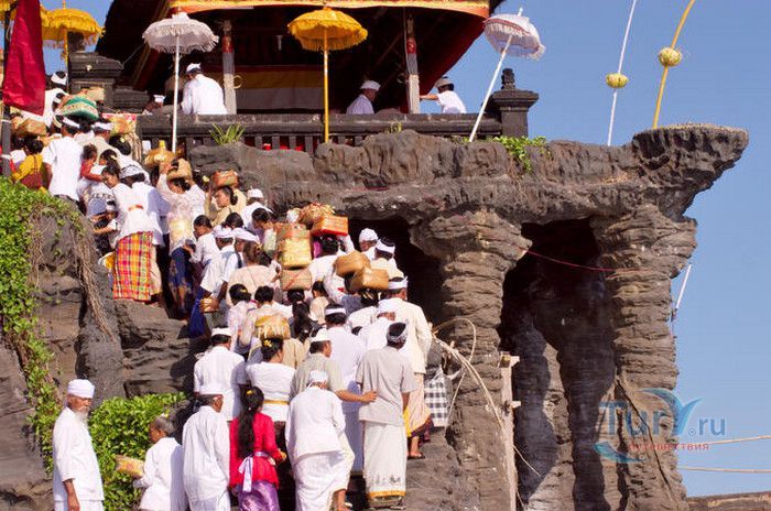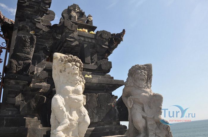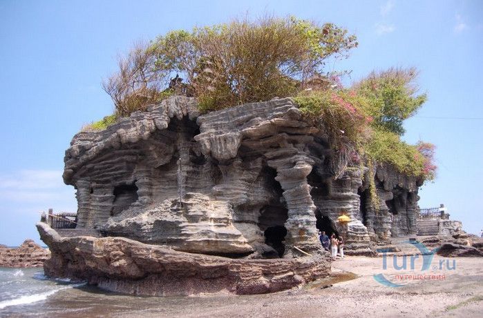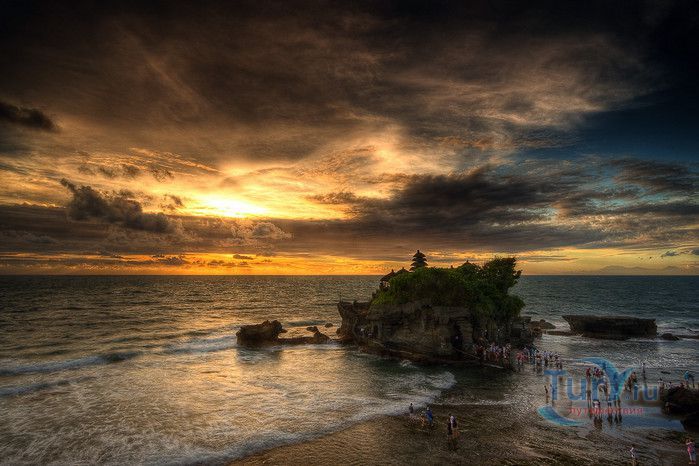 Храм Танах Лот расположен в Индонезии, на юго-западе острова Бали, в 20 км от города Денпасар. Храм Танах Лот - действующий индуистский храм и одна из самых известных достопримечательностей острова Бали, которую ежегодно посещают около миллиона человек. Храм построен на скале, расположенной в нескольких метрах от берега, с сушей утёс связан узким перешейком, пройти по которому можно только во время отлива. Согласно легенде, в XVI веке храм на скале основал индуистский брахман Данг Хьянг Нирартх. Проповедника индуизма привёл к утёсу божественный свет, исходивший от бьющего из скалы родника. Эту скалу, по форме напоминающую птицу, Данг Хьянг Нирартх избрал местом для своих медитаций и проповедей. Достаточно быстро у него появилось большое количество учеников, что вызвало недовольство у местного священника, проповедовавшего монетеизм. Не желая уступать глашатаю новой веры, он попытался заставить Данг Хьянг Нирартха покинуть селение. Предание гласит, что силой своей веры Данг Хьянг оторвал утёс от берега и перенёс его в море. На вершине скалы был построен храм, названный Танах Лот, что означает "земля в море", в пещерах у подножия утёса проповедник поселил ядовитых морских змей, которые должны были охранять храм от злых духов и непрошенных гостей. Местные жители верят, что храм Танах Лот оберегает остров Бали от голода и эпидемий, место считается священным. Только верующим разрешено подниматься по ступеням, вырезанным в скале, и входить в храм, туристам позволено лишь заглянуть в пещеры. В главном здании поклоняются Богу моря, в здании, расположенном в северной части, - основателю храма. На закате, когда солнце "садится" в море, силуэт храма Танах Лот чётко вырисовывается на фоне багряного неба, фотографии с этим видом являются визитной карточкой острова Бали.