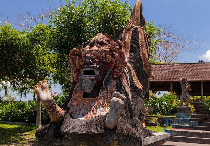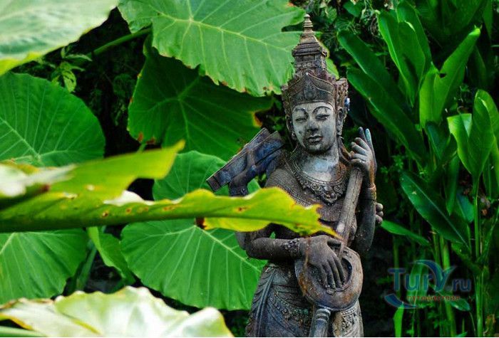 По всему саду расположено множество статуй. Они символизируют богов и демонов из индуистского эпоса — Рамаяна. Центральным элементом сада является фонтан Нава Санга на нижнем уровне. Его название можно перевести как «божественный хранитель». Фонтан состоит из 10 ярусов и символизирует высшего бога (Санг Хьянг Види), окруженного статуями балийских божеств.