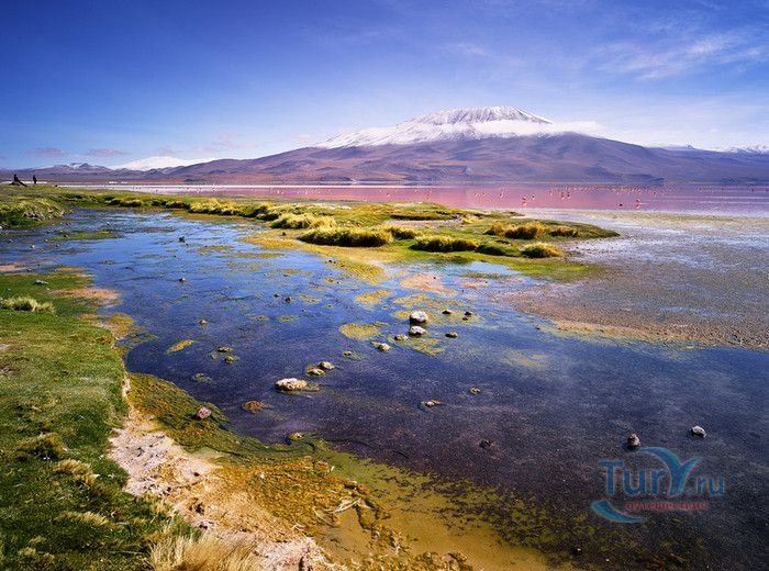 Если Вам когда-нибудь посчастливится увидеть красные, зеленые, желтые и голубые лагуны национального парка Эдуарде Авароа, Вы перестанете верить в то, что вода прозрачная. Эти капризные лагуны меняют свой цвет в зависимости от времени дня и освещения. Красная лагуна, также известная под названием «Гнездо Анд», приютила более 30000 фламинго разных видов. Вода в этой лагуне красноватая из-за почв осадочных пород. Здесь можно увидеть таких птиц как париначика или сока корнуда. На островах водятся ламы, викуньи, вискачи. Зеленая Лагуна обязана таким цветом воды магнию, входящему в состав почв ее дна. Скалы, гейзеры, вулканические впадины - все эти необычные ландшафты привлекают путешественников в этот парк.