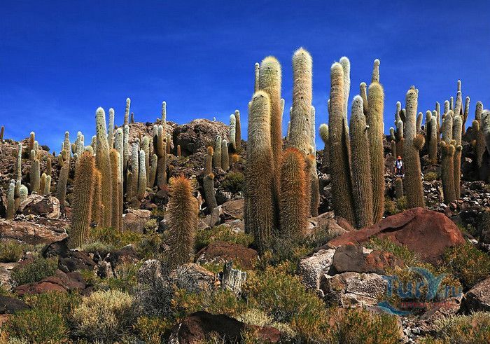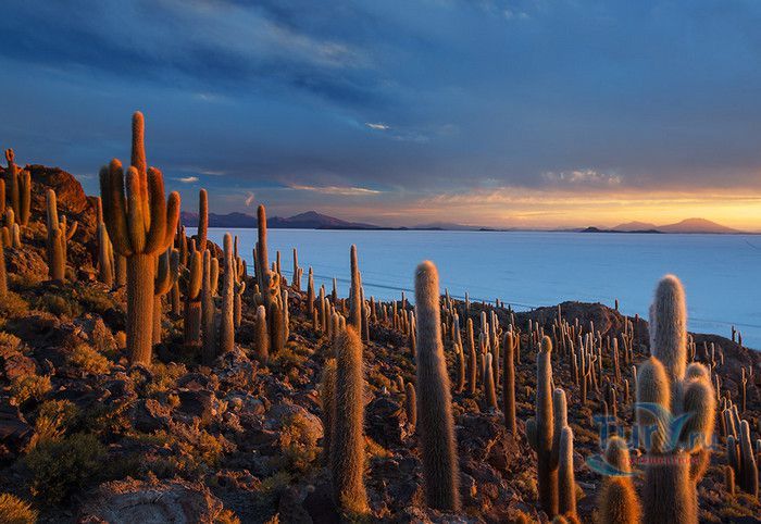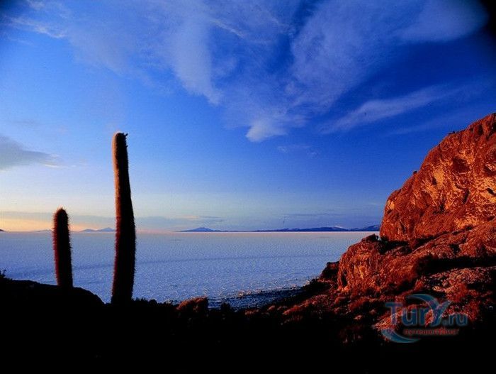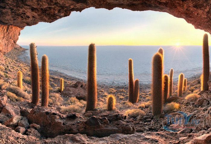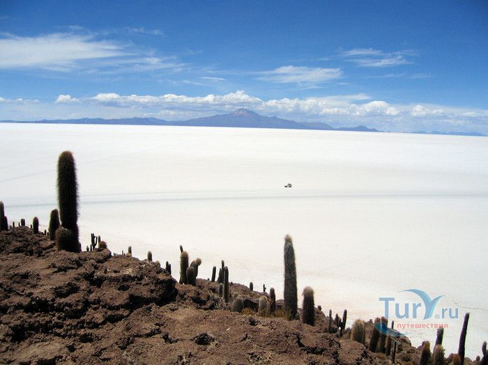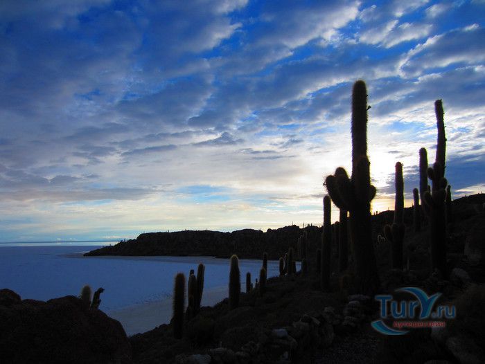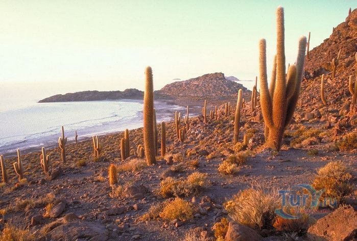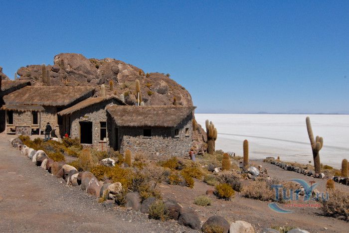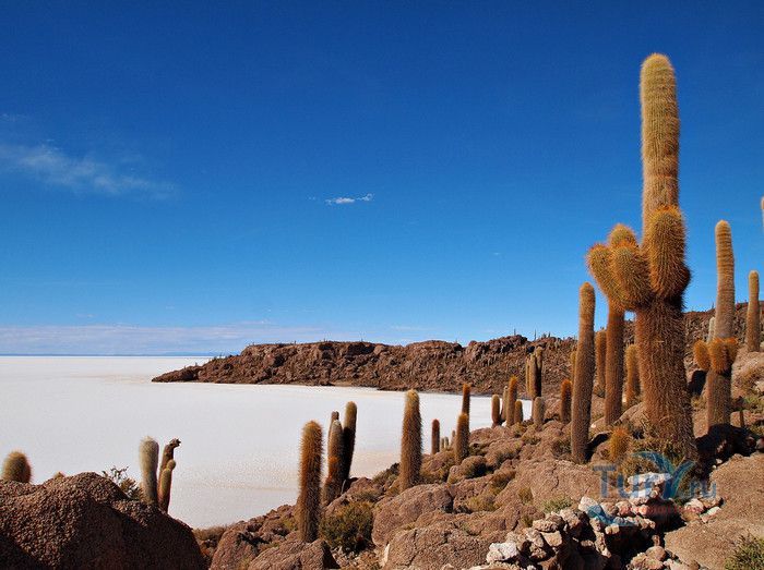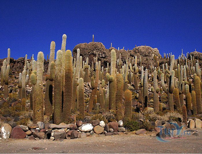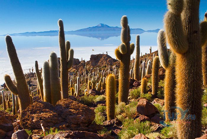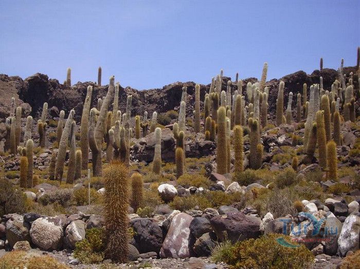 Остров Рыбы - не совсем остров, здесь нет воды и рыба не водится. Это своеобразный каменистый оазис, расположенный в северной части соляной пустыни Салар-де-Уюни, в Боливии. Название острову дали индейцы аймара из-за его формы. В сезон дождей, когда солончак, окружающий со всех сторон остров, покрывается слоем воды, отражение острова в соляном озере напоминает своими очертаниями гигантскую рыбу. А стремительно несущиеся по небу облака, отражаясь в водном зеркале, создают визуальный эффект волн на море. На каменистой почве острова растёт "кактусовый лес", гигантские растения могут вырастать до 10 метров в высоту. На острове живут несколько семей, из живности - только ламы, которых разводят местные жители. Туристическая инфраструктура не развита, добраться до острова достаточно сложно, в случае предполагаемой ночёвки, необходимо заранее согласовать вопрос с туроператором. Остров Рыбы не так известен, как расположенный в 20 км от него остров Инкауаси, но с каждым годом посмотреть на это чудо природы приезжают всё больше туристов.