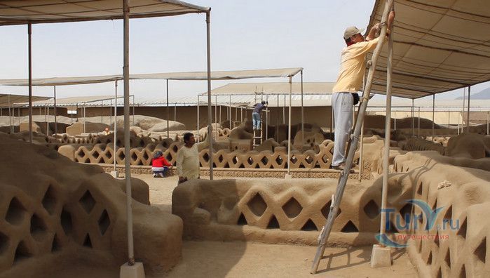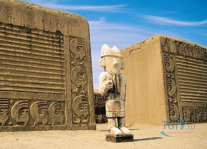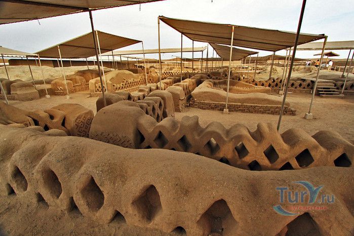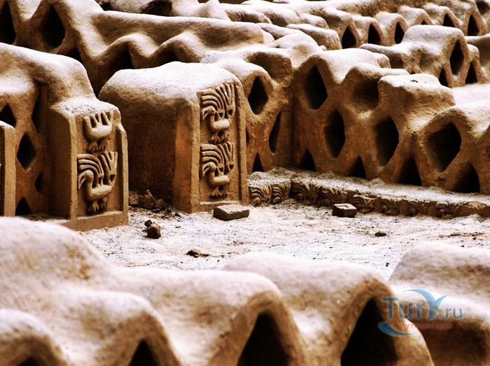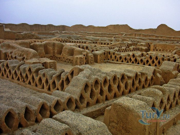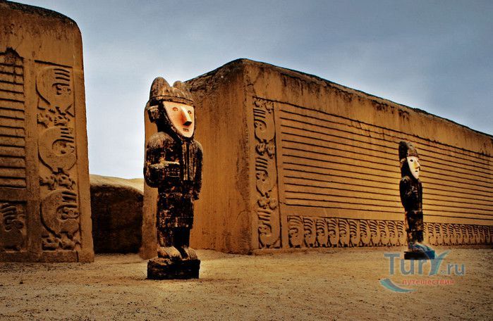 На прибрежных равнинах Перу, протянувшихся полосой между Андами и Тихим океаном, нет сколько-нибудь значительных каменоломен. Основным строительным материалом здесь издавна служит адоб - высушенный на солнце кирпич из глины. В Чан-Чане можно увидеть руины древнего города, который был целиком построен из этого кирпича. Когда-то Чан-Чан был столицей богатого, могущественного и густо заселенного государства Чиму. Чан Чан, созданный древним народом «Чиму» в ХII веке является самым большим глиняным городом в мире. Археологическая зона занимает 20 квадратных км и предполагается, что в городе проживали более 100 тысяч человек. Индейцы чиму были весьма искусными архитекторами и инженерами (они смогли выжить в этих краях лишь благодаря хитроумной и сложной системе водоснабжения), к тому же они достигли больших успехов в обработке металлов. Есть основания полагать, что стены главных зданий города были отделаны плитами из золота. Еще и сегодня можно оценить изящество и красоту орнаментов, выполненных на глиняном кирпиче, изображающих стилизованных животных и богов древних «чиму», но все остальные ценные украшения Чан-Чана давным-давно исчезли. Индейцы чиму жили очень строго организованным сообществом. Прямоугольные контуры города и его разбивка на различные районы дают основание считать, что в этом государстве в большой чести были логика и порядок. По всей видимости, в каждом из огороженных городских кварталов обитали по несколько тысяч человек. Центр города образует храм-крепость Тшуди. Особенно хорошо сохранился Зал 24-х ниш. Сейчас это прямоугольный двор, обнесенный стеной, в которую вделаны ниши, в них можно сидеть. По некоторым гипотезам, здесь заседал совет старейшин. Отличная акустика позволяла вести разговор - в этом можно убедиться и сегодня. Согласно другой гипотезе, в нишах стояли фигуры богов. Впрочем, о назначении многих зданий этого города остается только гадать. Зал 24-х ниш относится к комплексу зданий, который был огорожен высокой защитной стеной. Здесь можно осмотреть также развалины хижин, бассейн для сбора воды, административные здания и платформы, на которых проходили различные религиозные церемонии. Храм-крепость Тшуди образует один из десяти районов, составлявших город Чан-Чан. Некоторые из этих районов были обнесены высокими, девятиметровыми стенами. Среди других достопримечательностей города - Изумрудный храм (Ниака Esmeralda) и храм Радуги (Templo del кг со Iris), называемый еще храмом Дракона (Ниака del Dragon). Изумрудный храм был раскопан в 1923 году, а двумя годами позднее сильно пострадал от ливневых дождей. Это сооружение в форме двухъярусной пирамиды, необычайно богато украшенное рельефными орнаментами с мотивами морской флоры и фауны. Такой же богатый и разнообразный декор имеет храм Радуги. В археологическом комплексе находится музей и место для остановки любителей туризма и обзора комплекса. Комплекс Чан Чан в Перу восхищает туристов. В 1986 году ЮНЕСКО объявило его достоянием культурного наследия человечества.