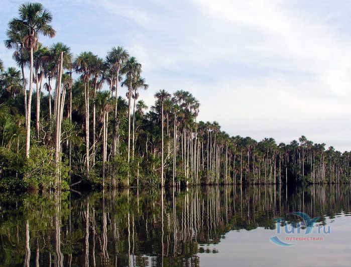 Национальный Заповедник Тамбопата расположен на юго-востоке Перу, на территории регионов Мадре-де-Диос и Пуно. Заповедник был создан в 1990 году с целью сохранения уникальных экосистем и биоразнообразия тропических лесов бассейна реки Тамбопата. Заповедная зона занимает территорию площадью 274690 гектаров, на которой расположены тропические и пойменные леса, реки, озёра и водопады, бамбуковые рощи и болота. В заповеднике Тамбопата обитают 632 вида птиц (южноамериканская гарпия, хохлатый орёл, цапли, гоацины, зимородки, почти все виды попугаев, которые встречаются в Перу, колибри и многие другие), 103 вида млекопитающих, в том числе ягуар, пума, оцелот, гигантская речная выдра, тапир, пекари, двупалые и трёхпалые ленивцы, олени, обезьяны (ревуны, белолобый капуцин, тамарины, мартышки). Биологами определены также 169 видов пресмыкающихся, 103 вида земноводных, 180 видов рыб и огромное число видов насекомых, в том числе 1200 видов бабочек. Флора представлена 1255 видами растений, среди которых много редких и эндемичных. Здесь растут кедр, каштан, бразильский орех, пальмы, бамбук, орхидеи. В заповеднике есть несколько зон, открытых для посещения. В числе самых посещаемых туристами мест - озеро Сандовал, одно из самых красивых озёр в бассейне реки Мадре-де-Диос. Площадь водоёма - 127 гектаров, на его берегах растут пальмовые рощи, вокруг озера, через непроходимые джунгли, проложены туристические тропы, во время похода можно увидеть диких животных и тропических птиц. Скалистые берега реки Тамбопата покрыты глиной, богатой минеральными солями. Каждое утро сюда слетаются тысячи попугаев ара и других птиц, устраивая шумное представление. Птицы едят глину, которая обогащает их организм необходимыми солями. В открытой для посещения территории заповедника развит экотуризм, разработаны увлекательные пешеходные и лодочные маршруты, работают гиды, оборудованы кемпинги, палаточные лагеря, смотровые площадки.