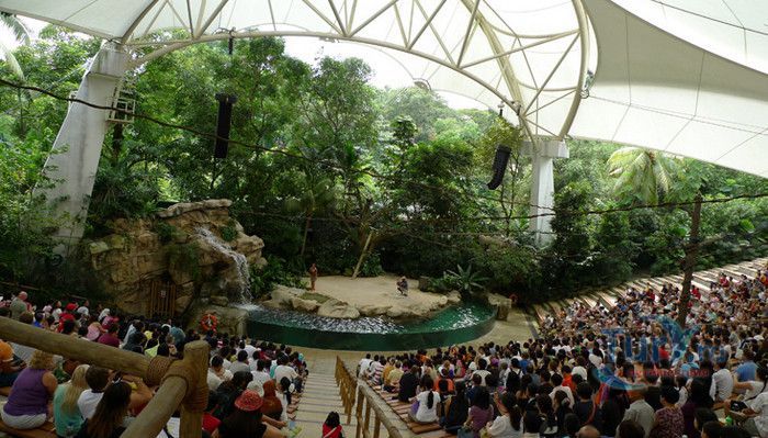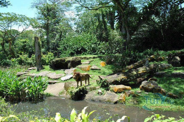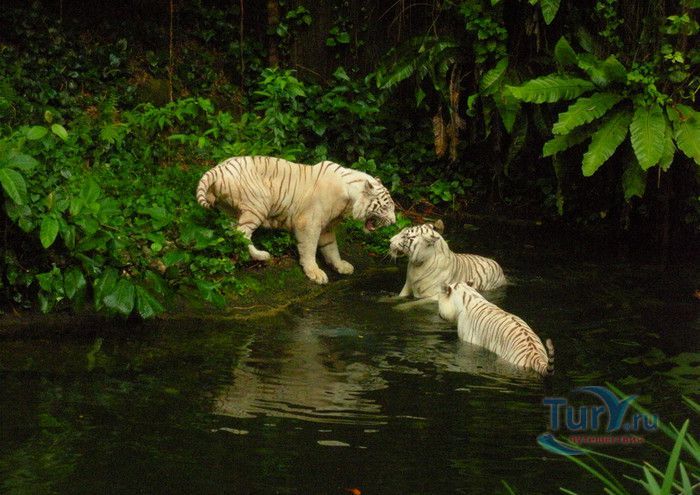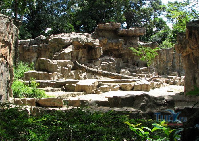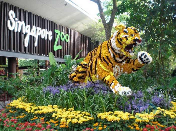 Сингапурский Зоопарк расположен на побережье водохранилища Верхний Селетар, среди густого тропического леса Мандэй. Зоопарк был открыт 23 июня 1973 года, занимает территорию площадью 26 гектаров, на которых обитают более 2800 животных, представляющих 315 видов млекопитающих, птиц и рептилий. Гости зоопарка могут наблюдать животных в их естественной среде обитания, большая часть зверей и птиц живут в просторных открытых вольерах и отделены от посетителей лишь глубокими рвами или стеклянными заграждениями. В зоопарке оборудованы смотровые площадки, высокие платформы для наблюдением за жирафами, подводные галереи, позволяющие увидеть мир водных животных, карликовых бегемотов или крокодилов. Хищники (львы, тигры, гепарды) размещены в застеклённых вольерах, внутри которых воссозданы реальные природные ландшафты дикой природы. В зоопарке есть несколько природных зон. В Африканской саванне чувствуют себя как дома львы, жирафы, африканская дикая собака, белые носороги и зебры. В зоне тропического леса обитают лемуры, ленивцы, броненосцы, муравьеды, летучие мыши, игуаны и множество насекомых. В зоне засушливых степей Австралии можно встретить кенгуру-валлаби, бородатого дракона, казуара, коалу, плащеносную ящерицу и австралийского питона. В зоне Великой рифтовой долины Эфиопии живут гамадрилы, нубийские козлы и полосатые мангусты. Здесь же воссоздана амхарская деревня - традиционное поселение коренных племён Эфиопии с глинобитными хижинами и деревянными фигурами умерших героев, стоящих на страже у входа в деревню. На острове Гиббонов обитают обезьяна-ревун, гиббоны, рыжий вари (млекопитающее из рода лемуров вари), фламинго. А на территории Королевства приматов проживают 39 видов обезьян. Среди пышной тропической растительности можно увидеть коричневого капуцина, мартышку-гусара, макак, вьетнамских лангеров. В глубоких рвах, наполненных мутной водой, обитает "живое ископаемое" - южноамериканская плотоядная рыба Арапайма, крупнейшая их пресноводных рыб в мире. В Саду Рептилий водятся гигантские черепахи, дракон Комодо (крупнейшая ящерица в мире), игуана-носорог, сетчатый питон, гремучие змеи и анаконды. Ледяная пещера с водопадом и большим бассейном, наполненным огромными глыбами льда - царство полярного белого медведя. А ещё азиатские слоны, бегемоты, бурые медведи, панды, тигры, крокодилы, дикобразы, грызуны - всех обитателей Сингапурского зоопарка просто невозможно перечислить. В зоопарке проводятся многочисленные шоу с участием животных, обзорные трамвайные экскурсии, увлекательный туры, разработаны образовательные программы для детей и взрослых. Посетители зоопарка могут принять участие в кормлении питомцев, сфотографироваться со своим любимцем на память, отпраздновать день рождения и даже позавтракать в ресторане с семейством орангутангов. Ежегодно Сингапурский зоопарк посещают более полутора миллионов человек.