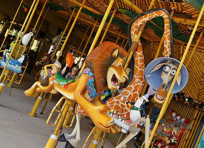 Название зоны Мадагаскар говорит само за себя. Неунывающие герои одноимённого мультфильма окунут своих гостей в мир веселья, бесшабашной музыки и зажигательных танцев. Король лемуров Джулиан приглашает прокатиться на весёлой карусели, Алекс, Марти, Глория и Мелман составят компанию в увлекательном заплыве по реке, а неугомонные пингвины "зажгут" перед гостями буги-вуги.