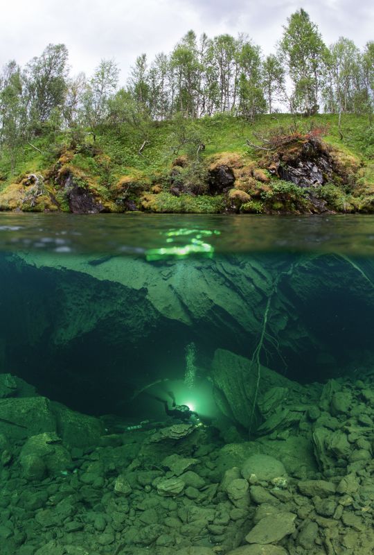 Система подводных пещер Плюра находится на севере Норвегии, в 35 км от города Му-и-Рана. Ее открыли британские геологи еще в 60-х годах прошлого века. Общая протяженность пещер составляет около 2600 метров. Плюра считается самой большой подводной пещерой в Скандинавии. Ежегодно ее посещают около 300 дайверов со всего мира.