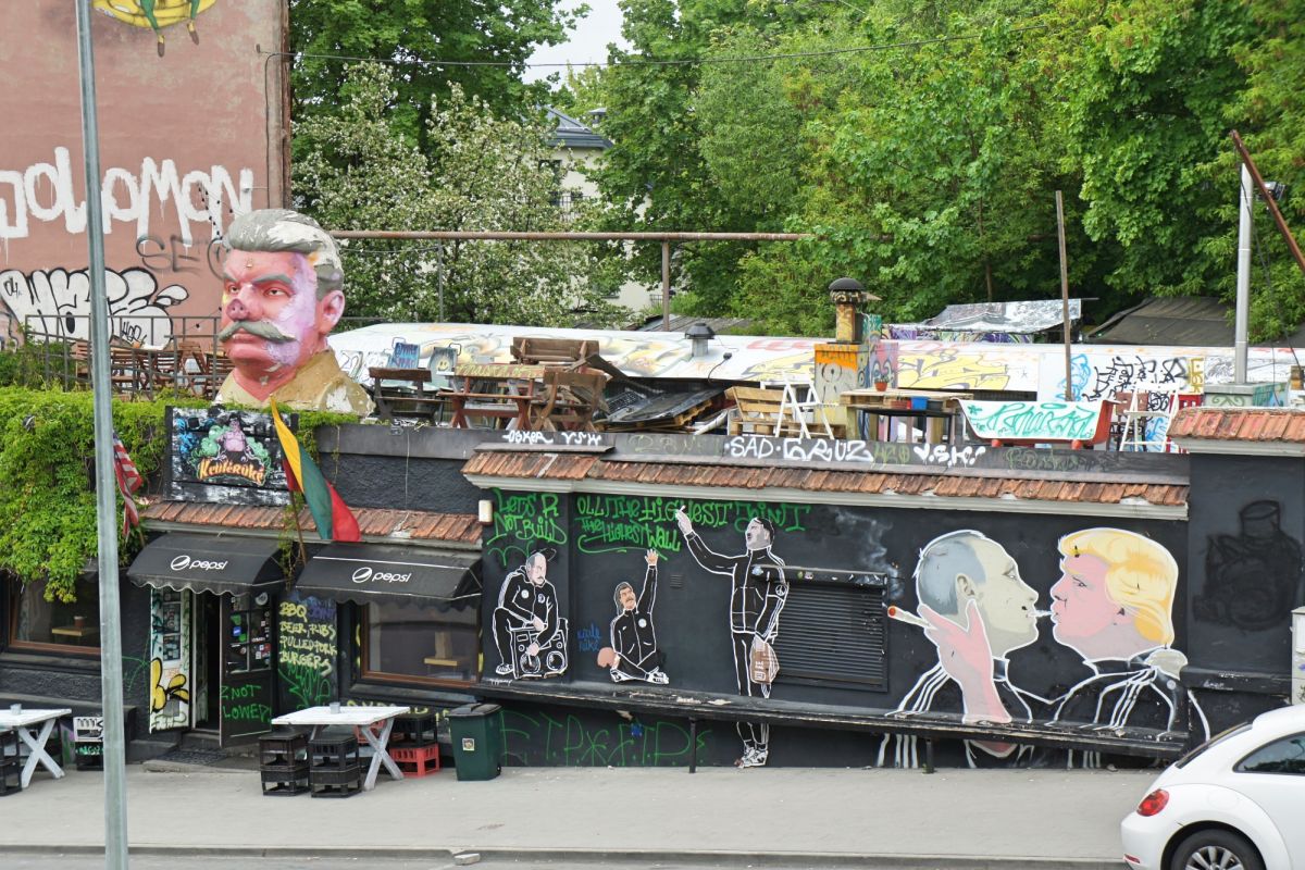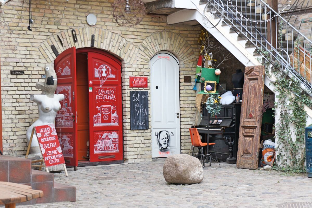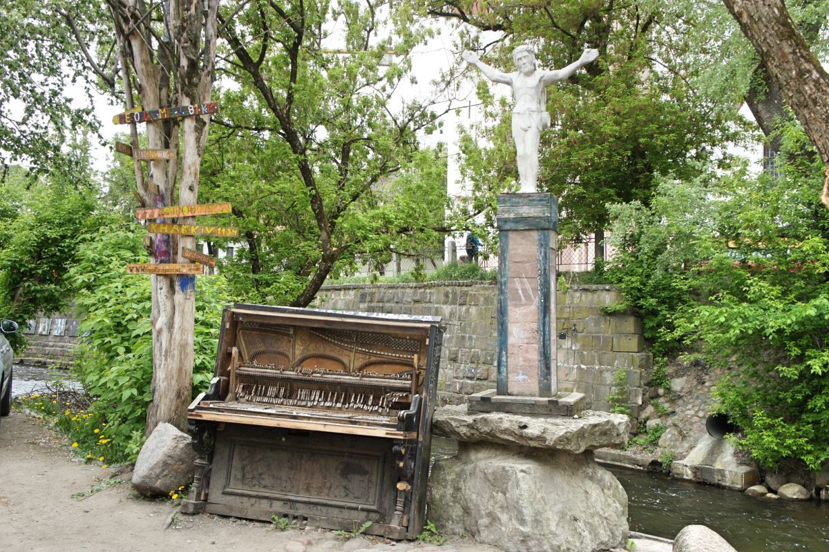 Ужупис, или Заречье - довольно странное местечко, район с альтернативным взглядом на жизнь, как Христиания в Копенгагене, но менее либеральный. Можно сказать, что здесь властвуют не хиппи, а свободные художники.
