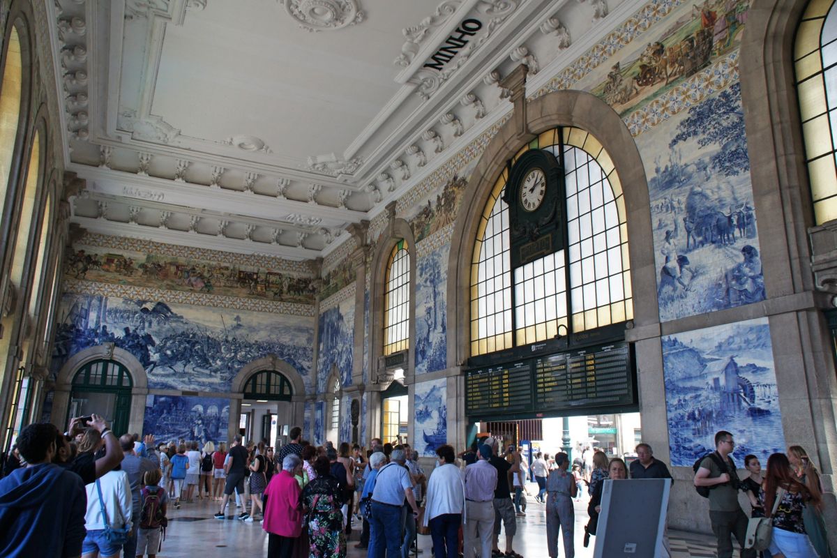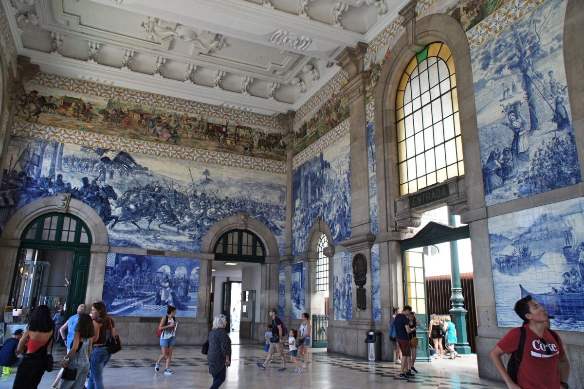 Сбежим от серости в недра города, полного пестрой синевы. Любителям, поклонникам и фанатам изразцовой росписи стоит посетить Церковь Святого Ильдефонсо - истинный пример техники азулежу. Или ее не менее выдающегося собрата по уровню мастерства - Вокзал Сан-Бенту. Здания эти настоящие галереи искусств, где в первом случае фасад, а во втором - внутреннее оформление представляют собой собрание картин, шедеврально исполненных в аутентичном стиле азулежу.