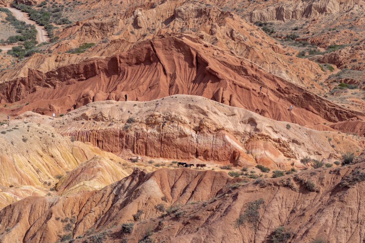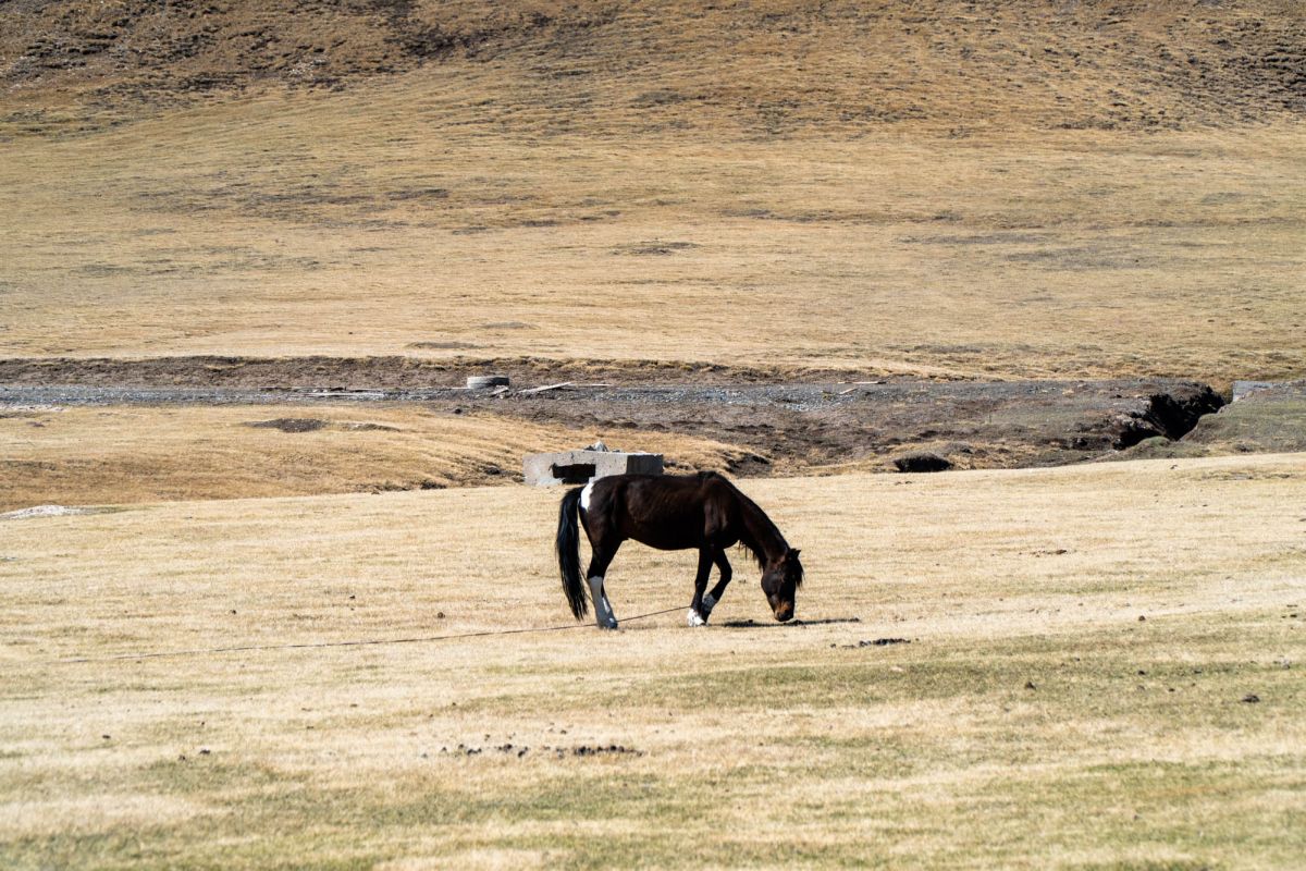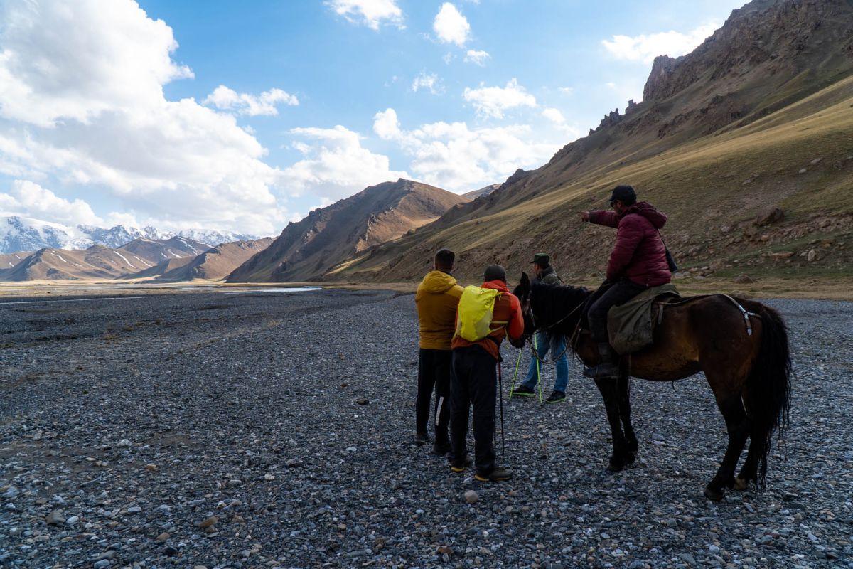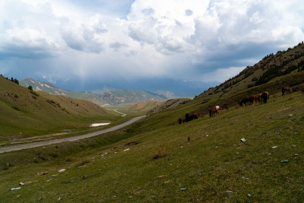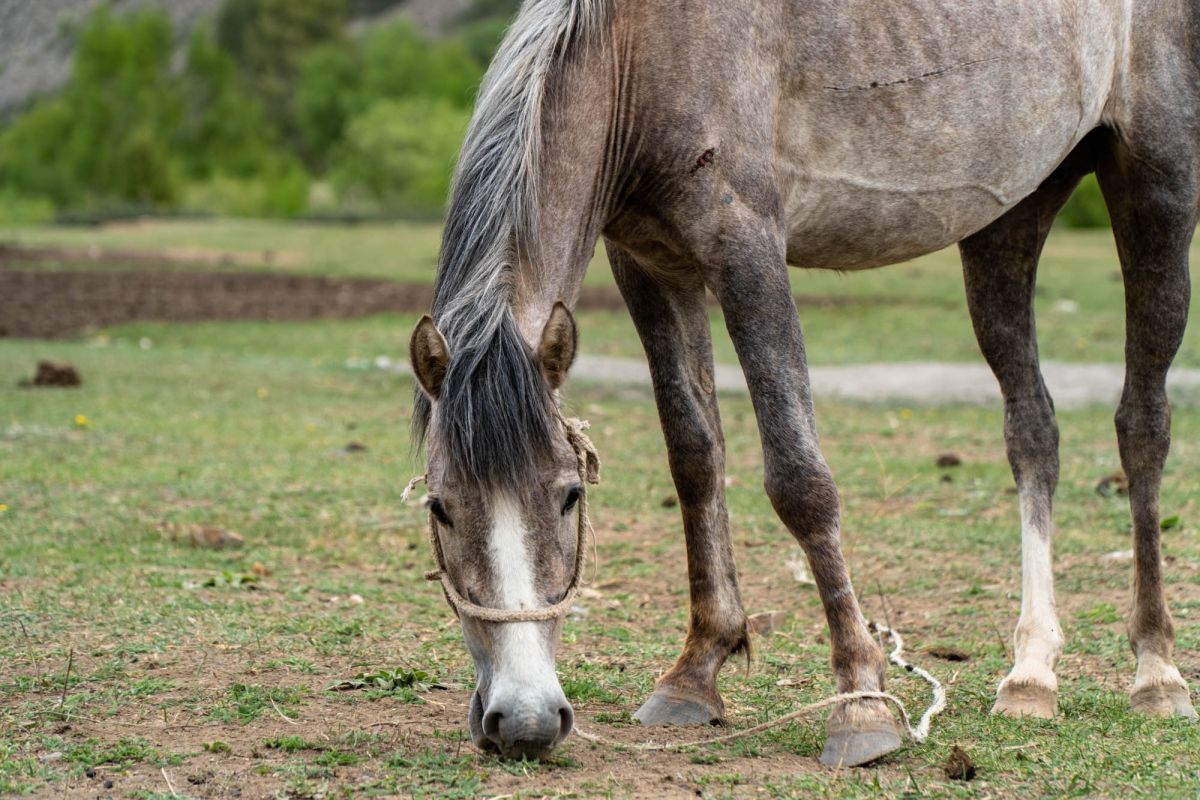 Кони нам достались все разные - и по цвету и по характеру. Мой гнедой, золотисто-рыжий, у Павла - бело-коричневый пятнистый тобиано, а у Макса серый, как предрассветный сумрак. Максимким самый резвый, они то и дело исчезают из виду, уходят то в рысь, то в галоп. Пытаюсь погнать своего, но он в ответ лишь громко пускает газы. Так неспешным аллюром и движемся по полям, холмам, через рвы и тонкими тропами по склонам. В речной долине сквозь витые потоки нужно отыскать брод на ту сторону, а чем выше, тем глубже и беспокойней беснуется Кёк-Кыя.