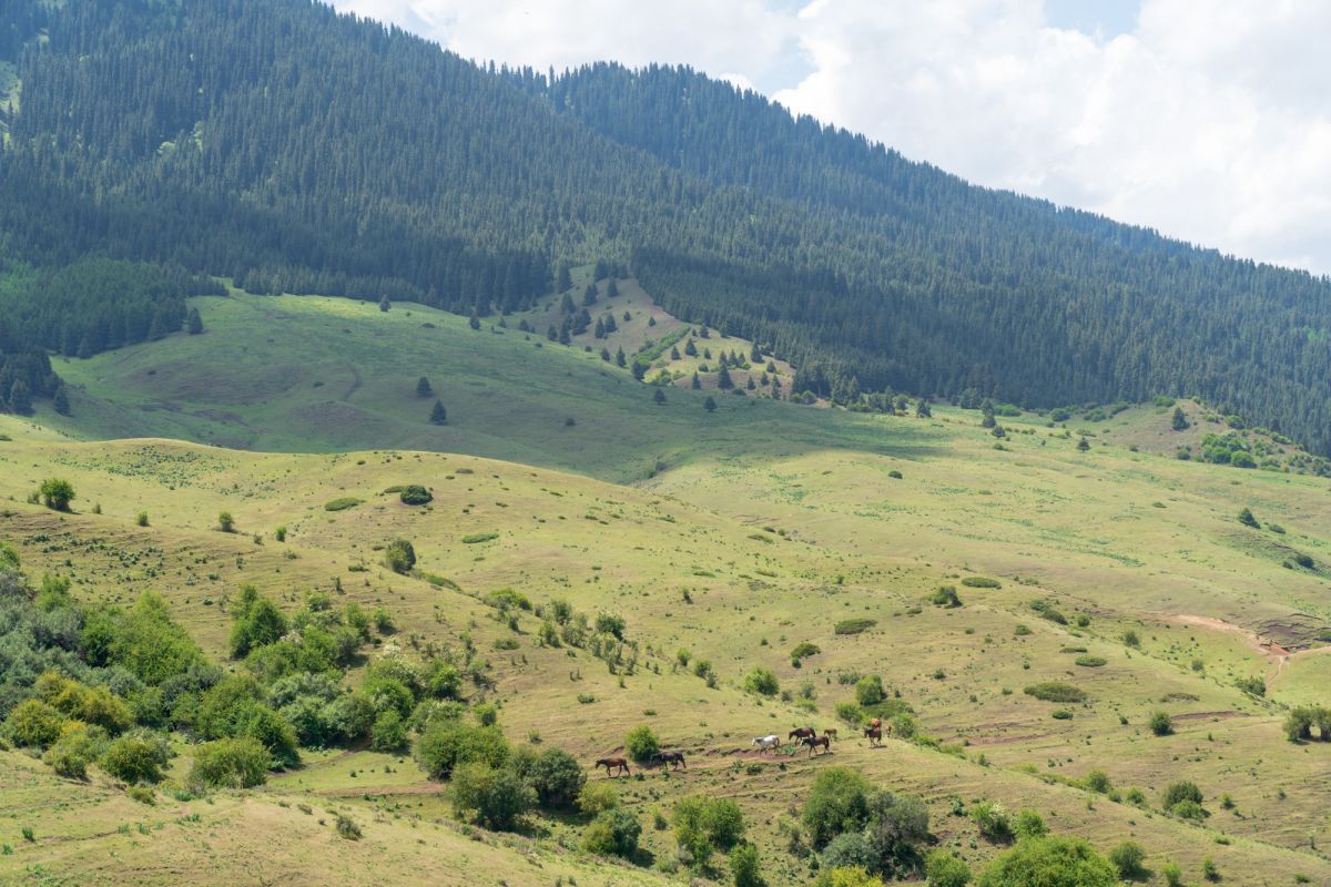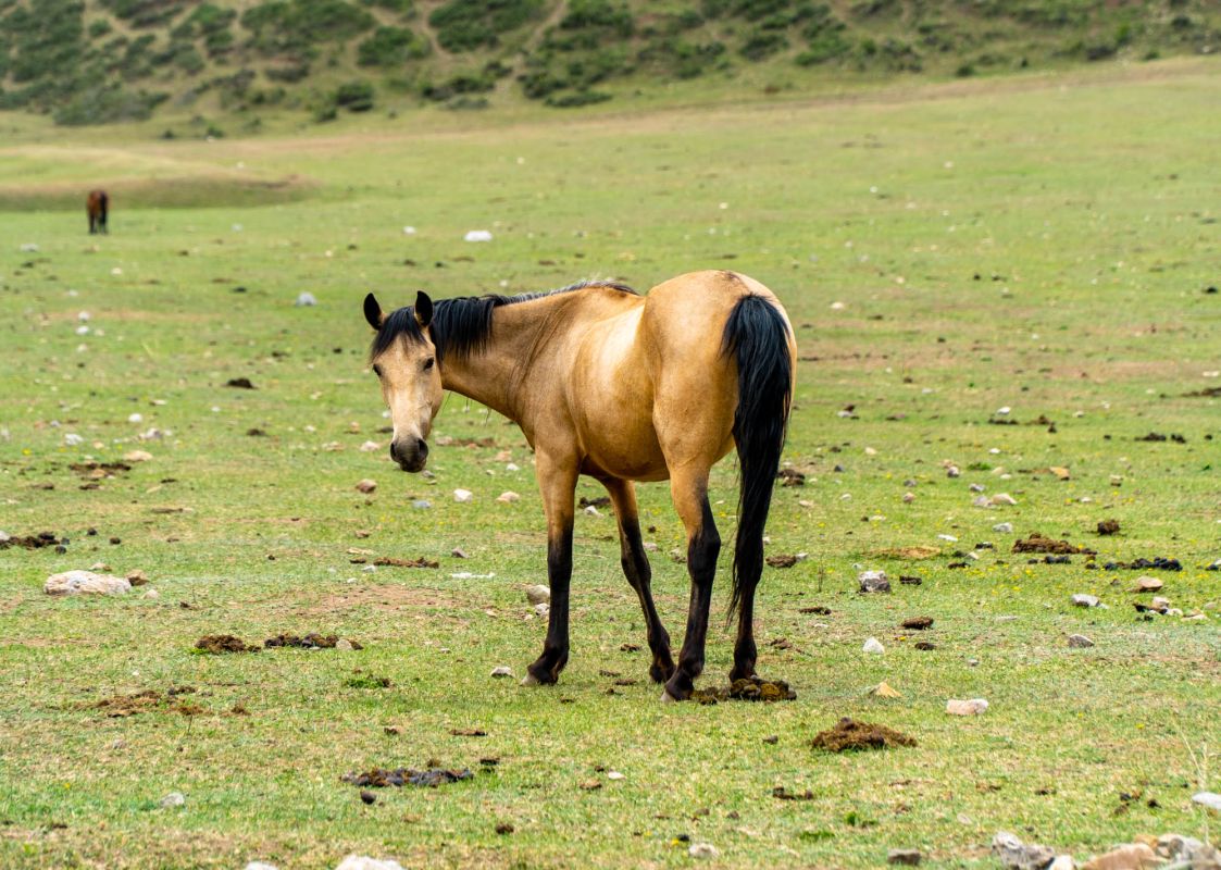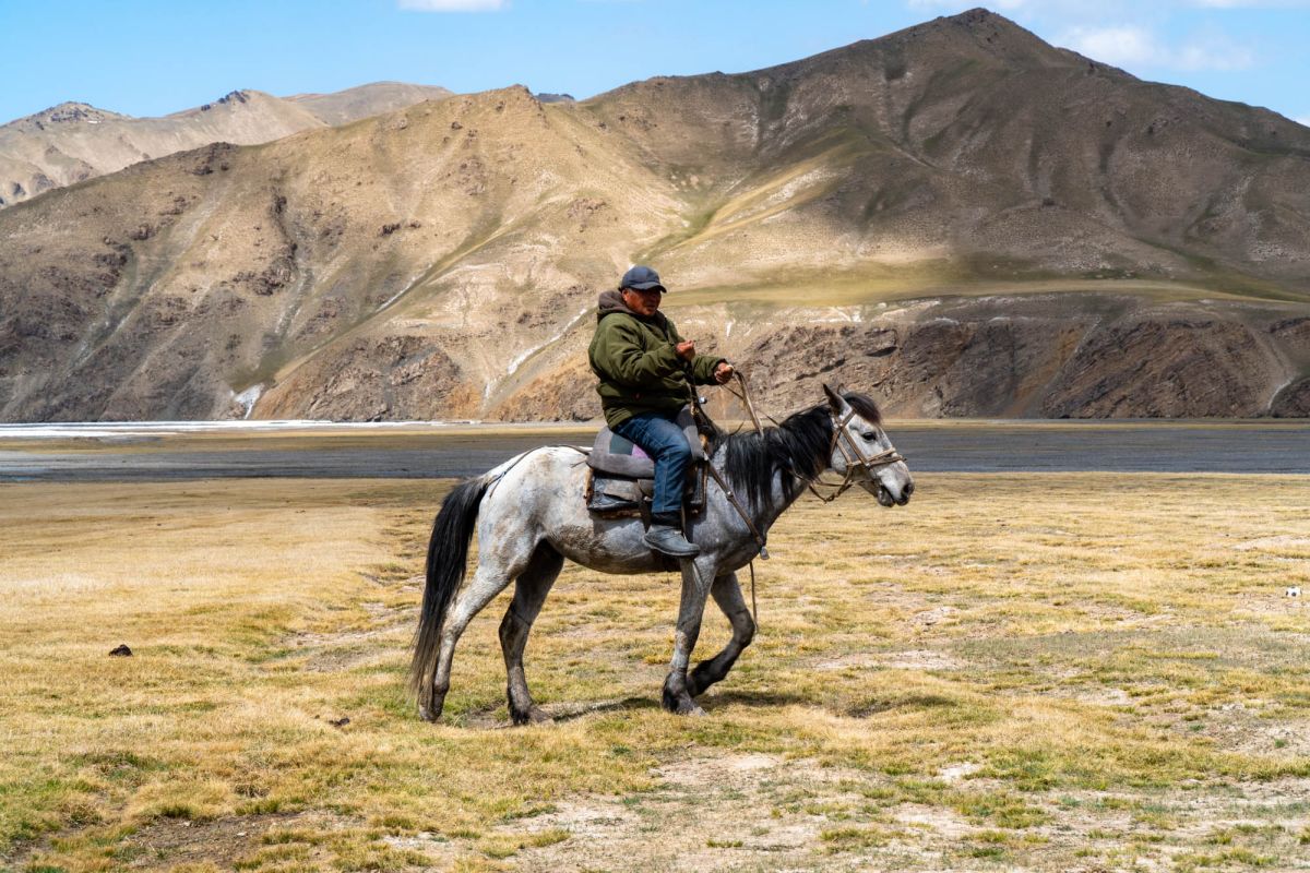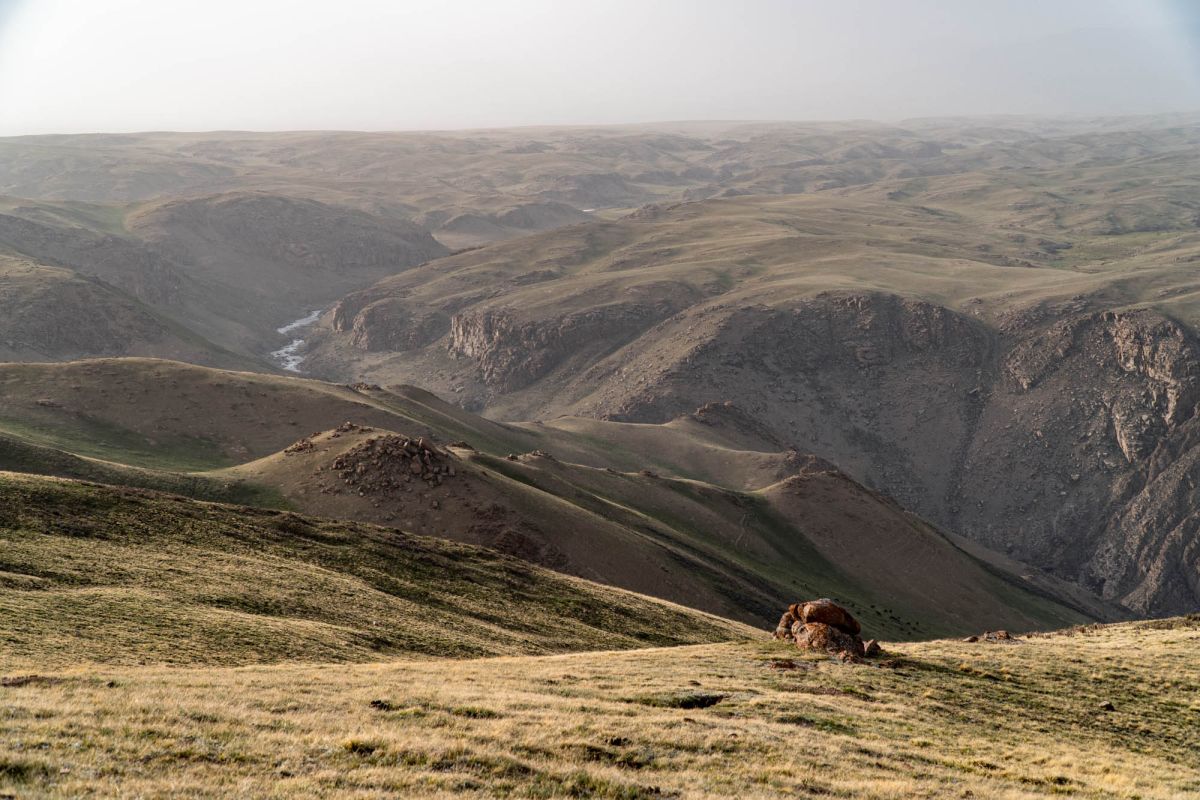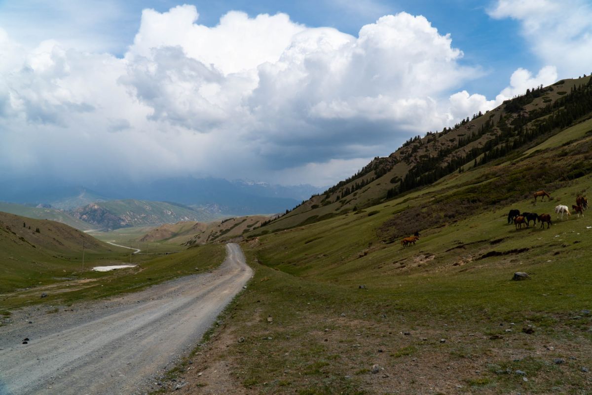 Кони нам достались все разные - и по цвету и по характеру. Мой гнедой, золотисто-рыжий, у Павла - бело-коричневый пятнистый тобиано, а у Макса серый, как предрассветный сумрак. Максимким самый резвый, они то и дело исчезают из виду, уходят то в рысь, то в галоп. Пытаюсь погнать своего, но он в ответ лишь громко пускает газы. Так неспешным аллюром и движемся по полям, холмам, через рвы и тонкими тропами по склонам. В речной долине сквозь витые потоки нужно отыскать брод на ту сторону, а чем выше, тем глубже и беспокойней беснуется Кёк-Кыя.