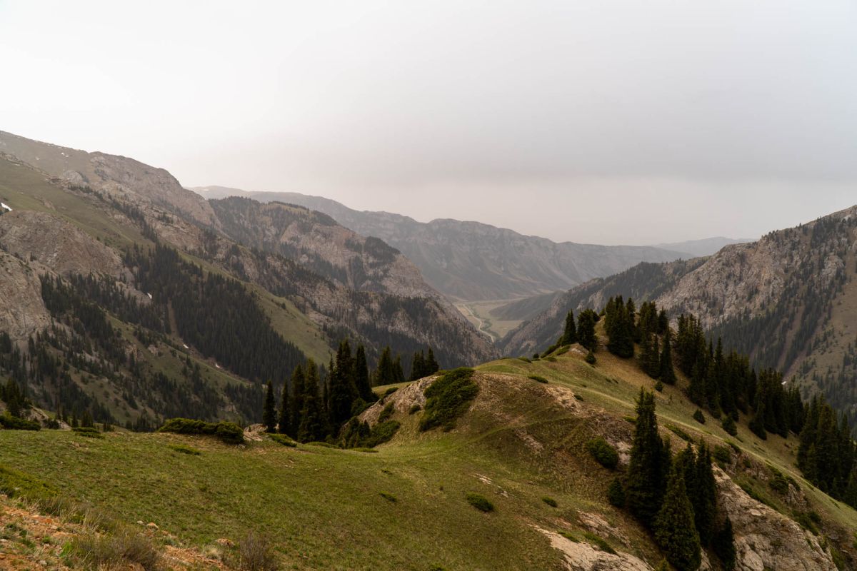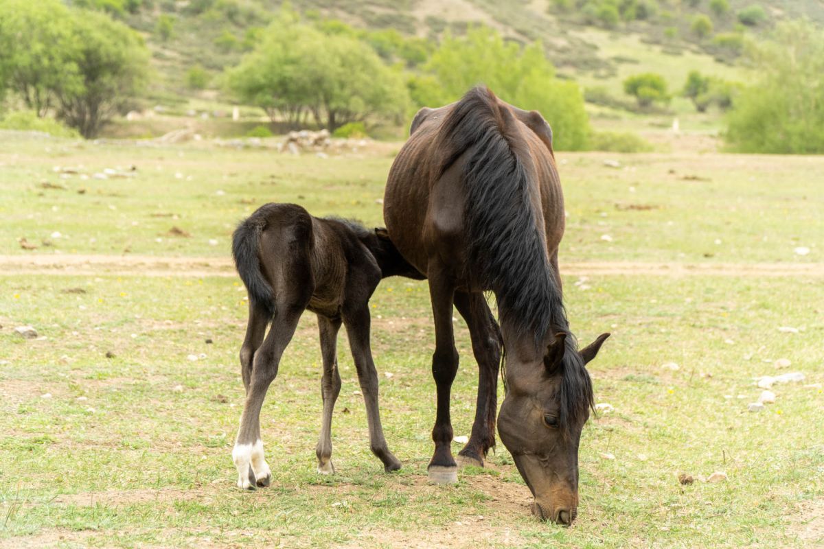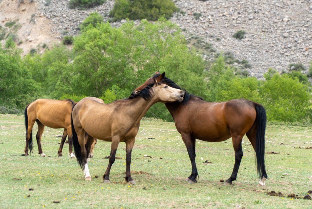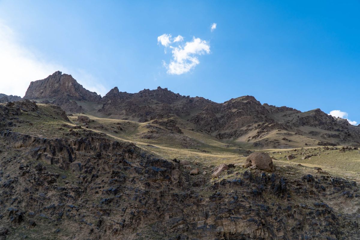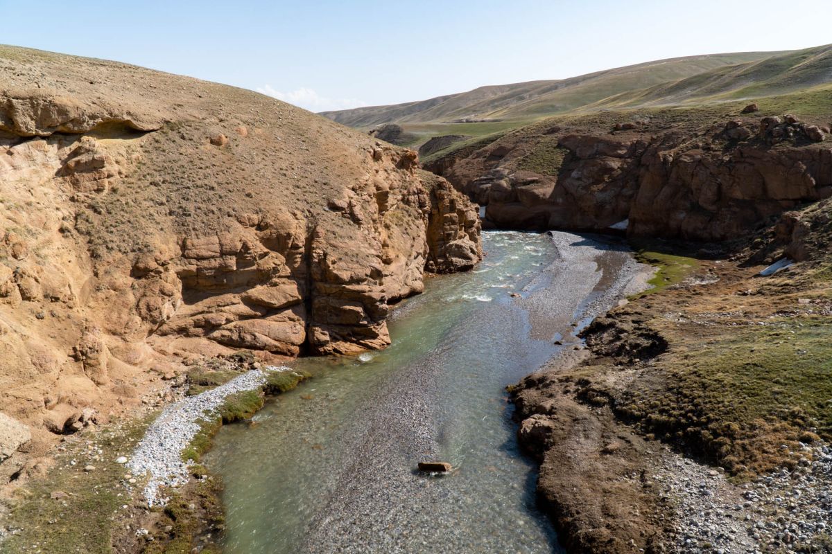 Кони нам достались все разные - и по цвету и по характеру. Мой гнедой, золотисто-рыжий, у Павла - бело-коричневый пятнистый тобиано, а у Макса серый, как предрассветный сумрак. Максимким самый резвый, они то и дело исчезают из виду, уходят то в рысь, то в галоп. Пытаюсь погнать своего, но он в ответ лишь громко пускает газы. Так неспешным аллюром и движемся по полям, холмам, через рвы и тонкими тропами по склонам. В речной долине сквозь витые потоки нужно отыскать брод на ту сторону, а чем выше, тем глубже и беспокойней беснуется Кёк-Кыя.