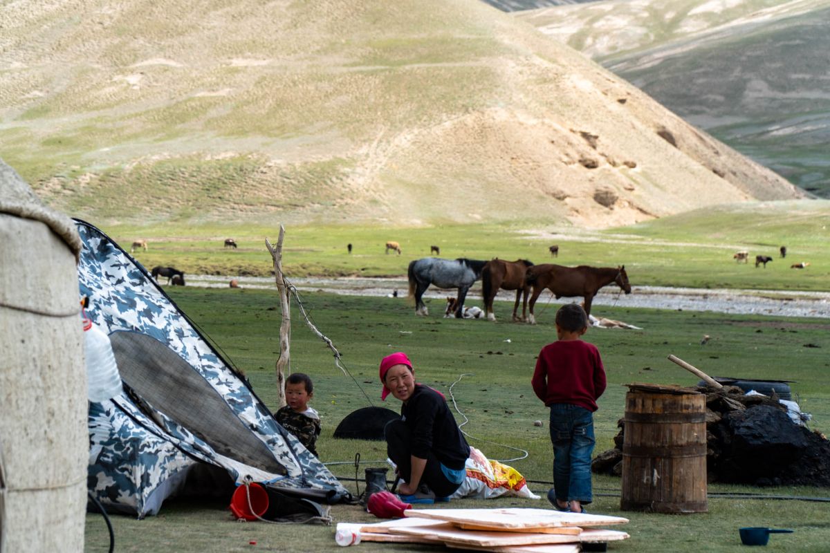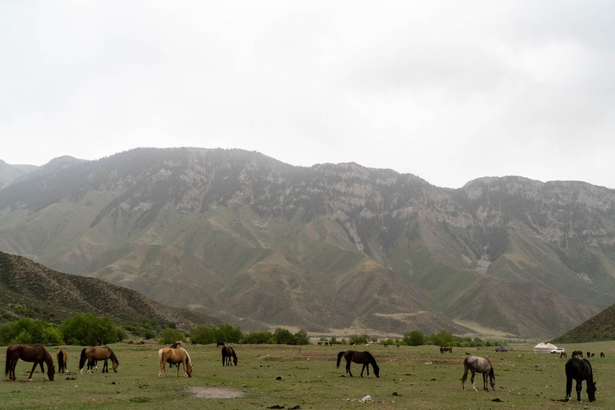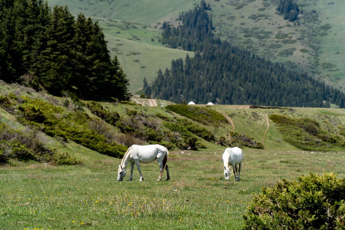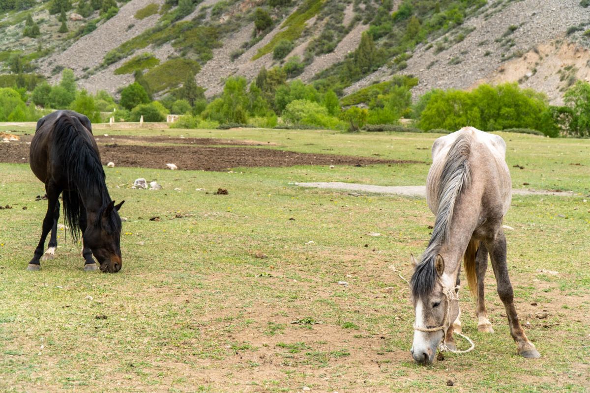 К утру тепло юрты почти развеялось. Я слышу, как ко внешней стене подошли лошади, рвут траву, жуют, звук такой насыщенный, сочный. Когда первые лучи просочились под дверь, на трубу вспорхнула пичуга и заливисто ржет конем. Имитирует со знанием дела, чудная птица. По сложившейся традиции, завтрак накрывается к 8 утра, едим что хозяйка подаст. Этот день посвящен походу на высокогорное ледниковое озеро Кель Суу - вверх по реке, на высоту 3500 м.