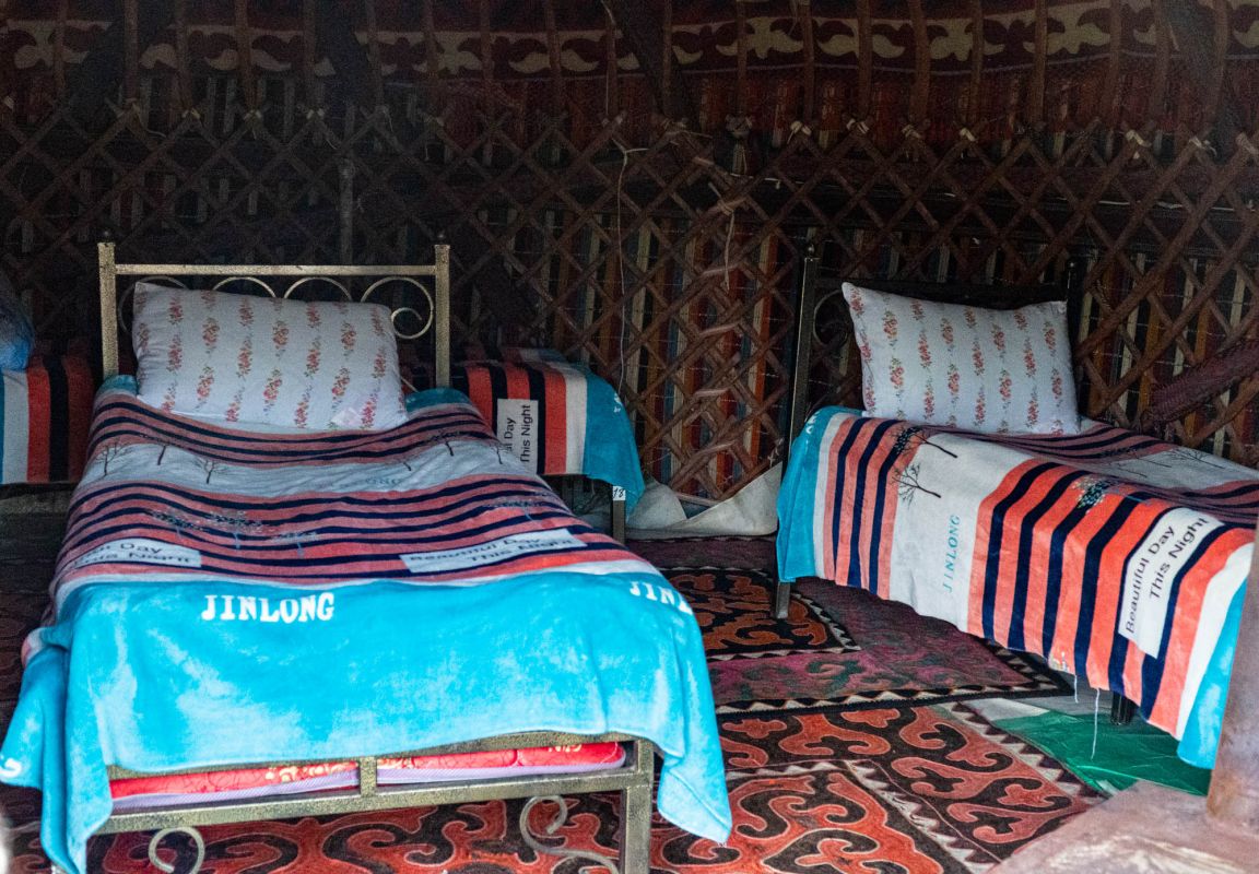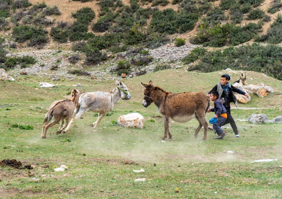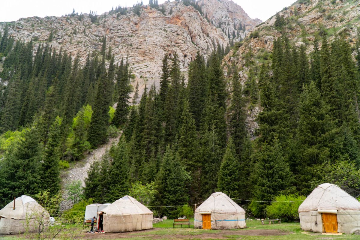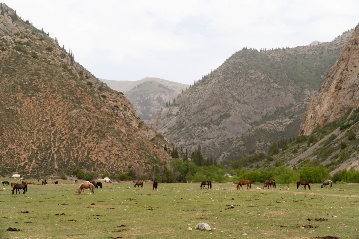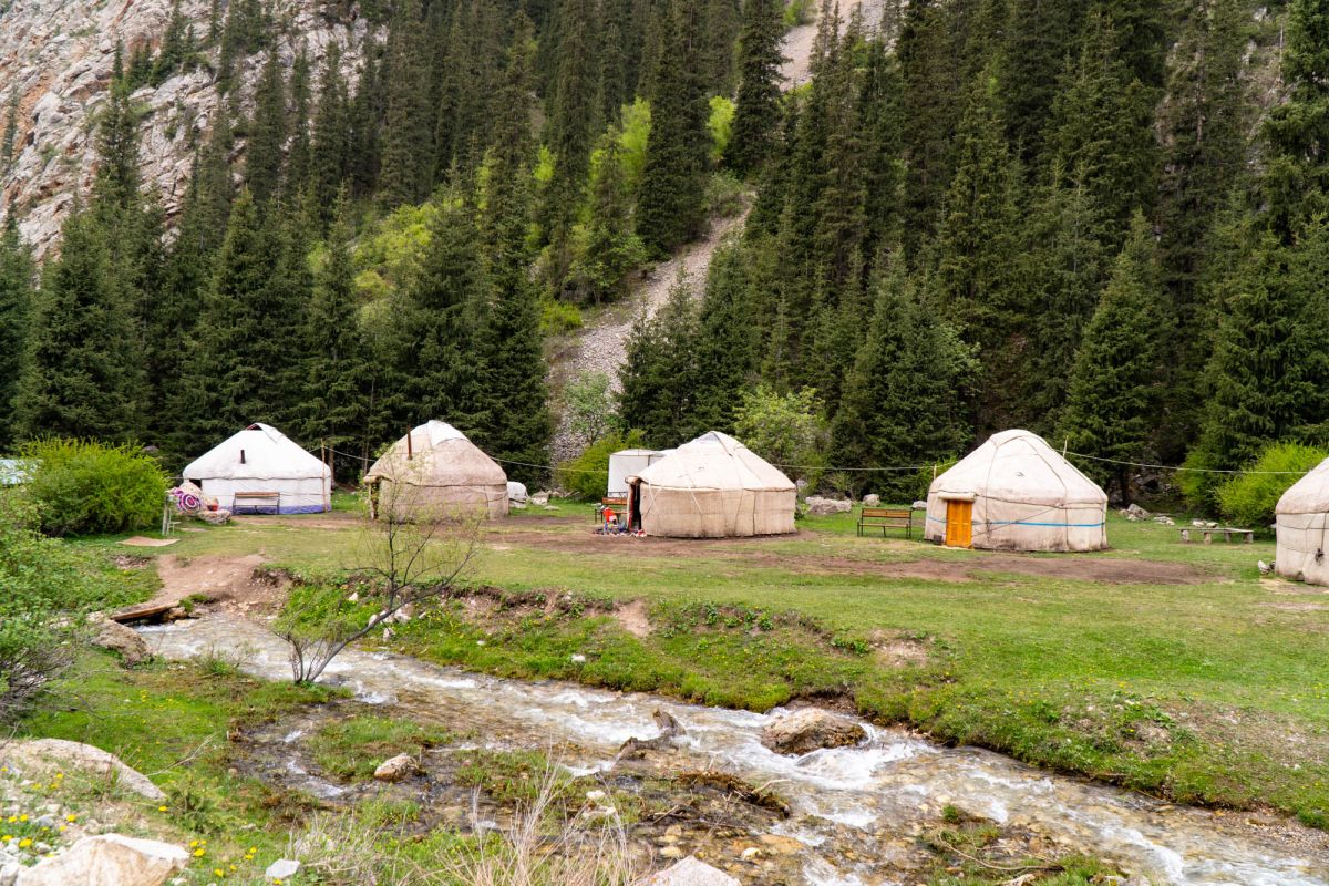 К утру тепло юрты почти развеялось. Я слышу, как ко внешней стене подошли лошади, рвут траву, жуют, звук такой насыщенный, сочный. Когда первые лучи просочились под дверь, на трубу вспорхнула пичуга и заливисто ржет конем. Имитирует со знанием дела, чудная птица. По сложившейся традиции, завтрак накрывается к 8 утра, едим что хозяйка подаст. Этот день посвящен походу на высокогорное ледниковое озеро Кель Суу - вверх по реке, на высоту 3500 м.