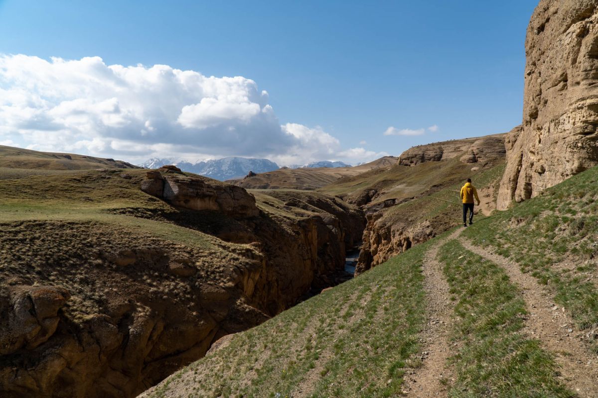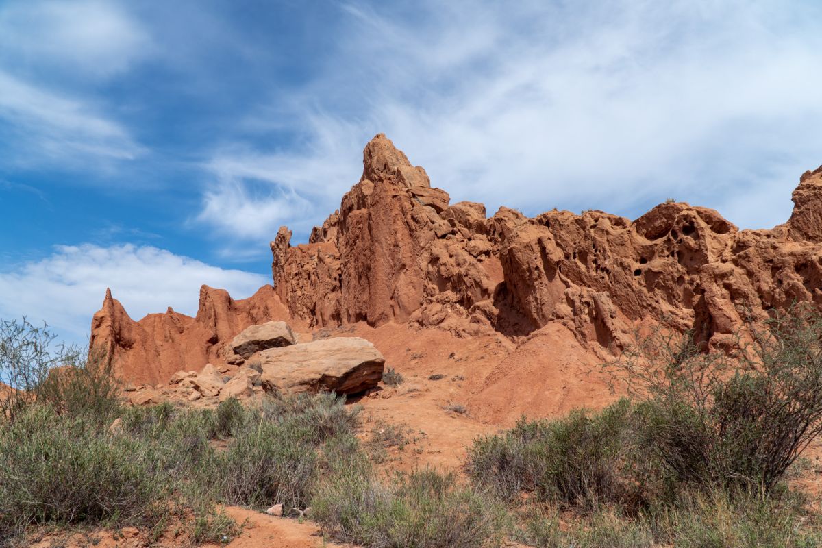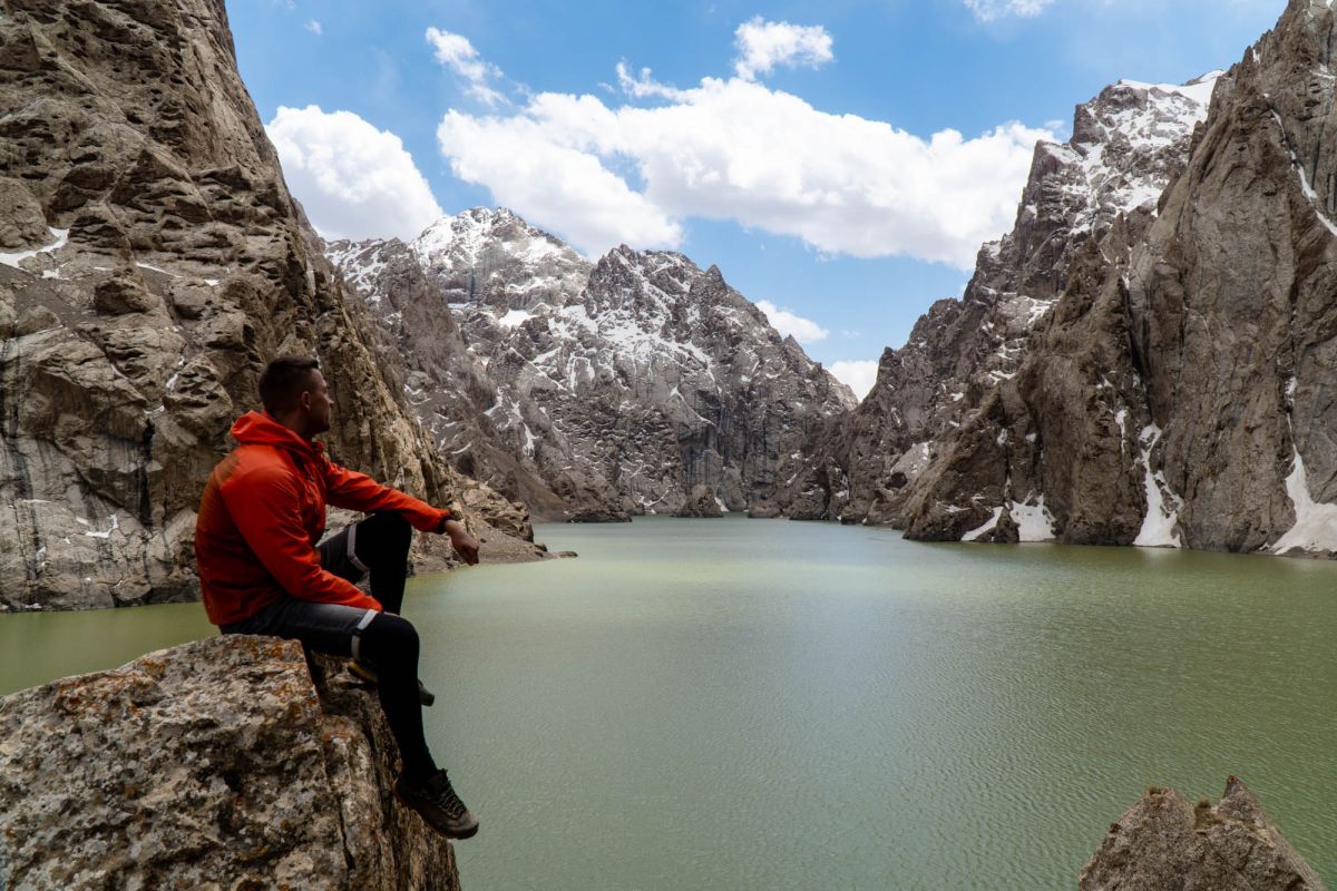 Разбавим выдумки нехитрыми фактами: Кель Суу означает "Приходящая вода", а стало быть и уходящая. Подземные пещеры и гроты пьют жадно и порой выпивают его до самого дна. Ширина озера варьируется от 500 м до 2000 м в самом широком месте, а длина его составляет аж 9 км. Озеро вьется между скал длинной водяной змеей, и с места, где собираются туристы, видна лишь его малая часть. Потому летом многие кучкуются в очереди на единственную лодку, которая позволяет углубиться в исследование его обворожительных протяженностей.