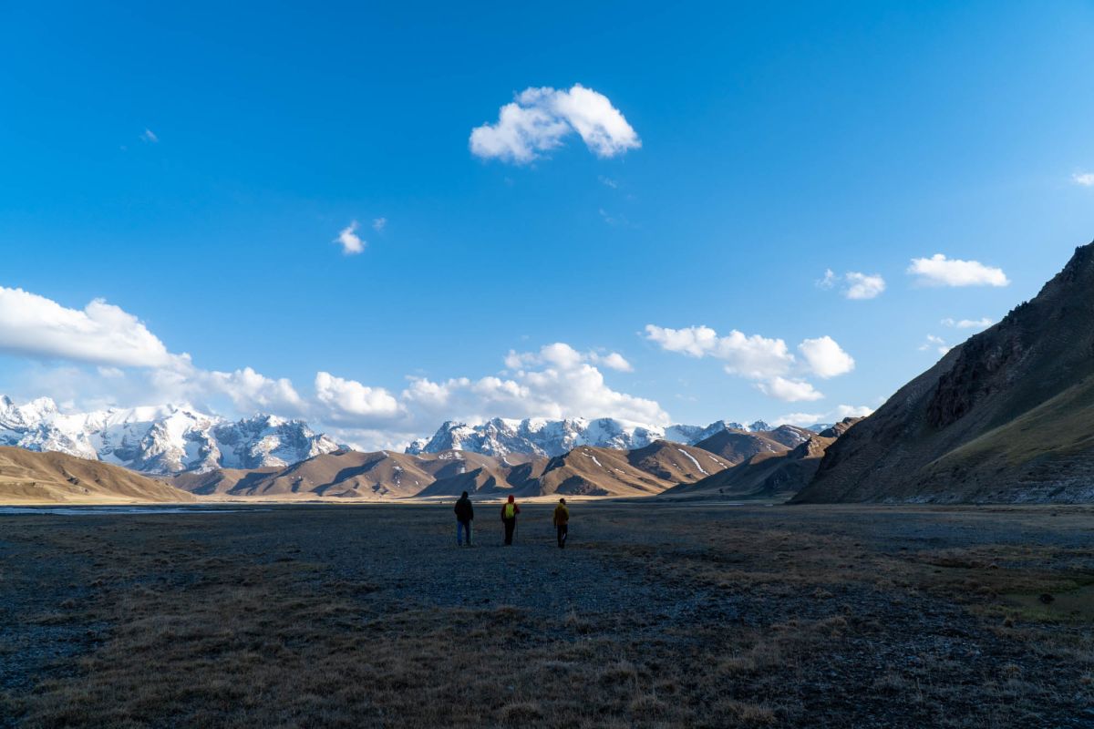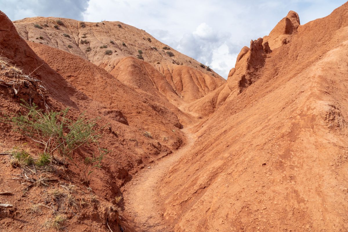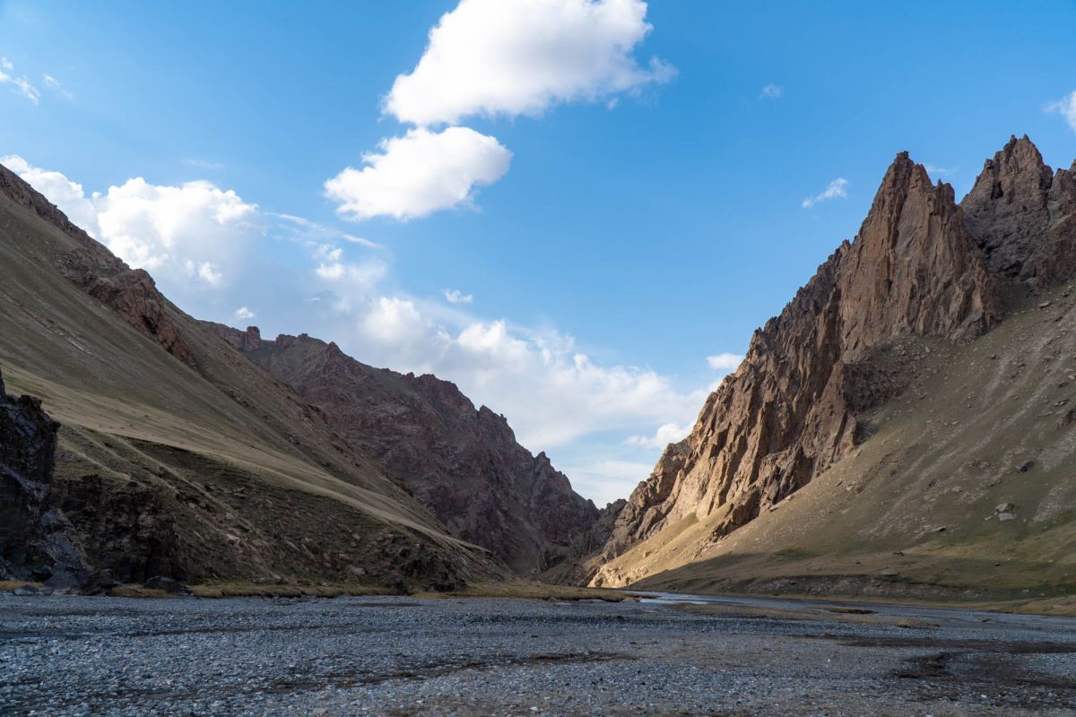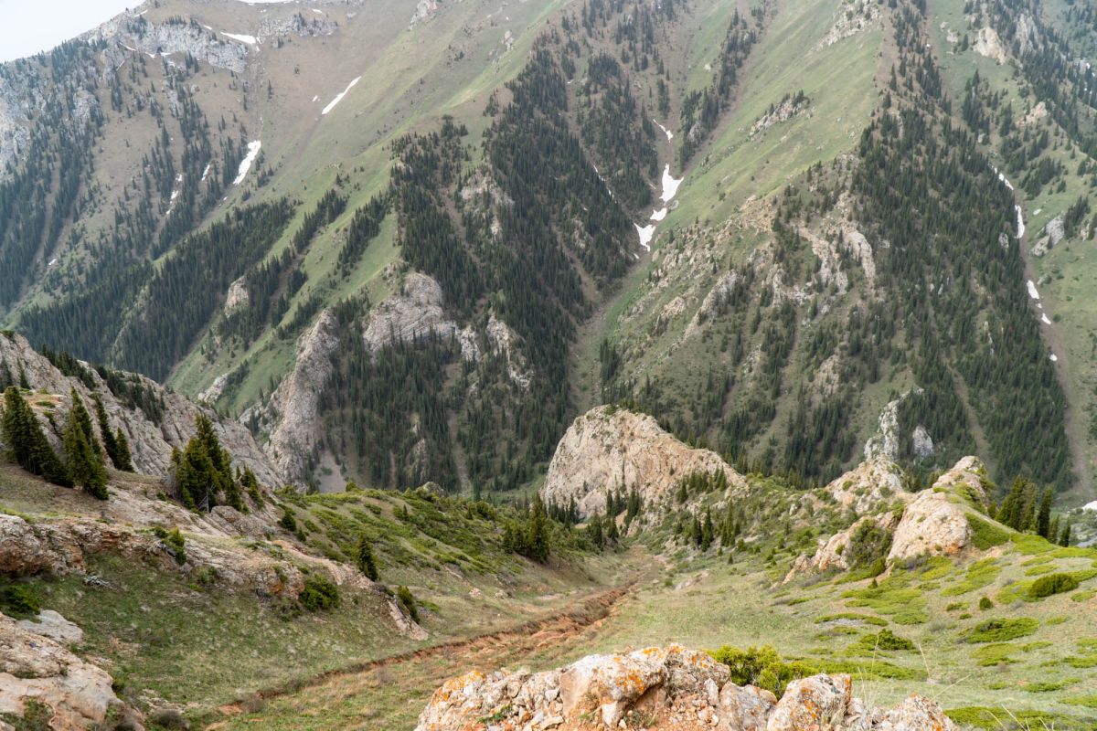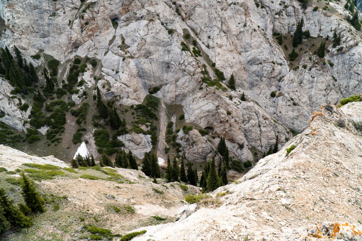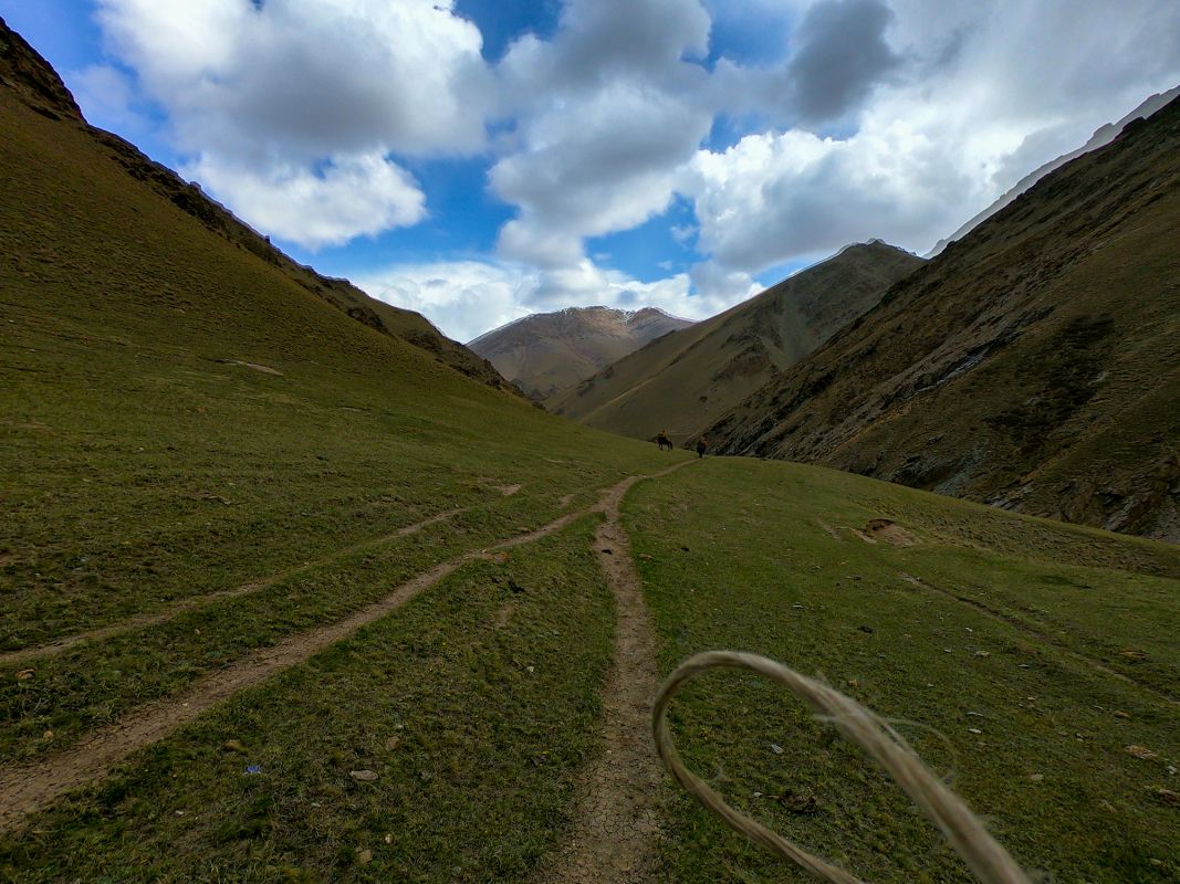 Тем временем, мы потихоньку пошли в сторону озера. Александр предлагал бросить игрища с рекой и пойти на озеро по правой стороне. Репутация его как проводника, надо сказать, была уже подмочена на Таш Рабате) На предложенном пути вздымались крутые склоны, лихие откосы и подозрительно отсутствовали даже намеки на следы и стежки. По левую же сторону вырисовывалась четкая линия истертой сотней ног пологой тропы. Между купанием и падением, останавливаю выбор на первом)