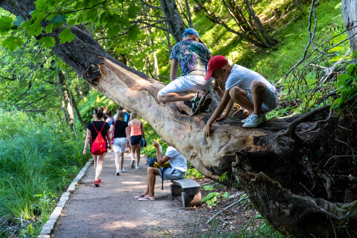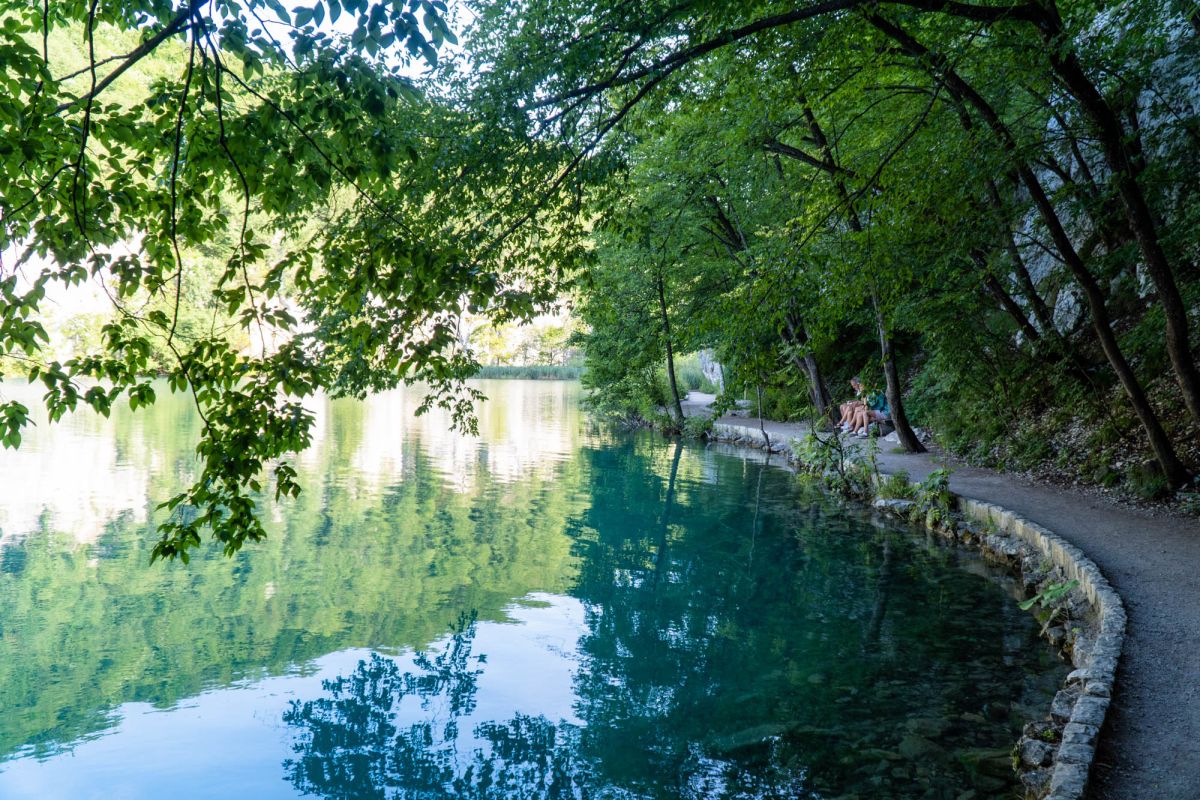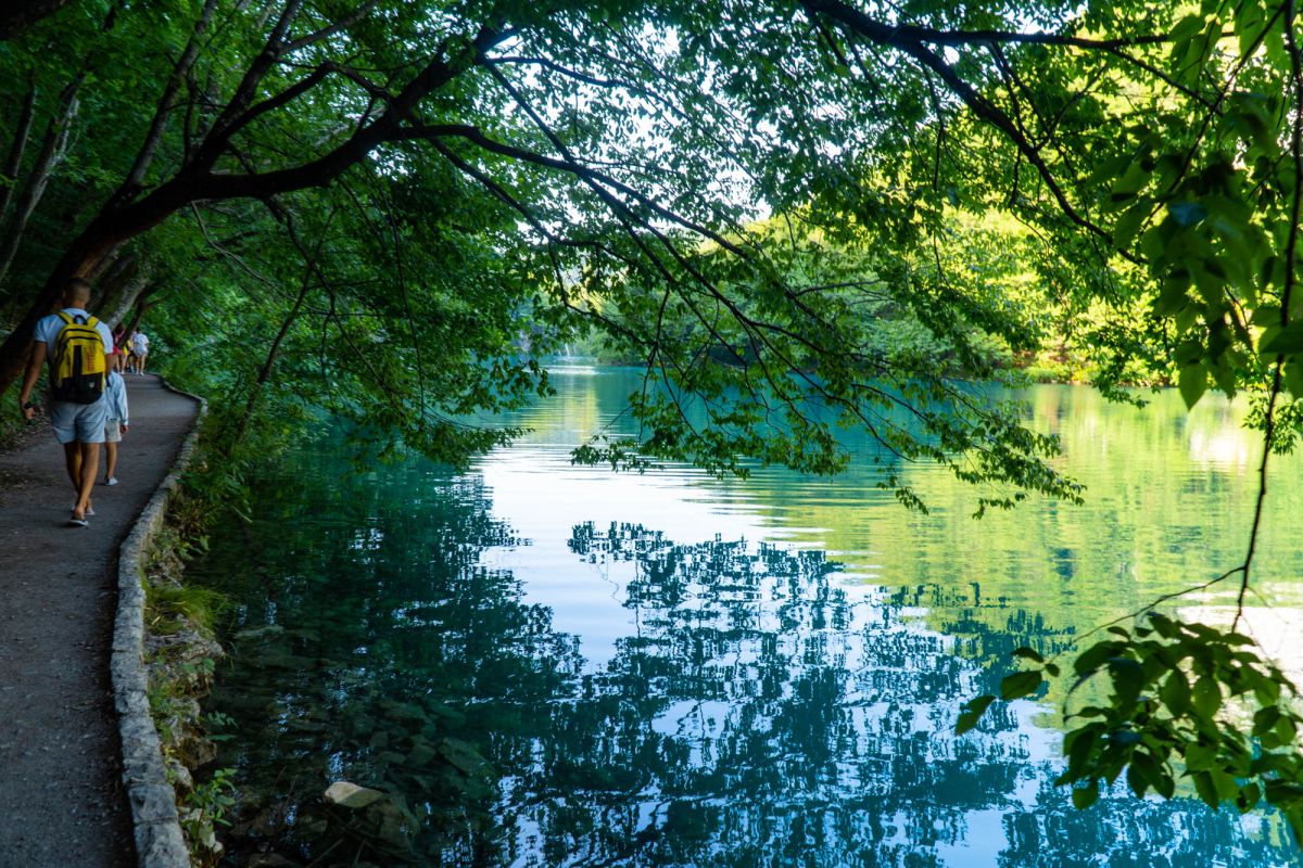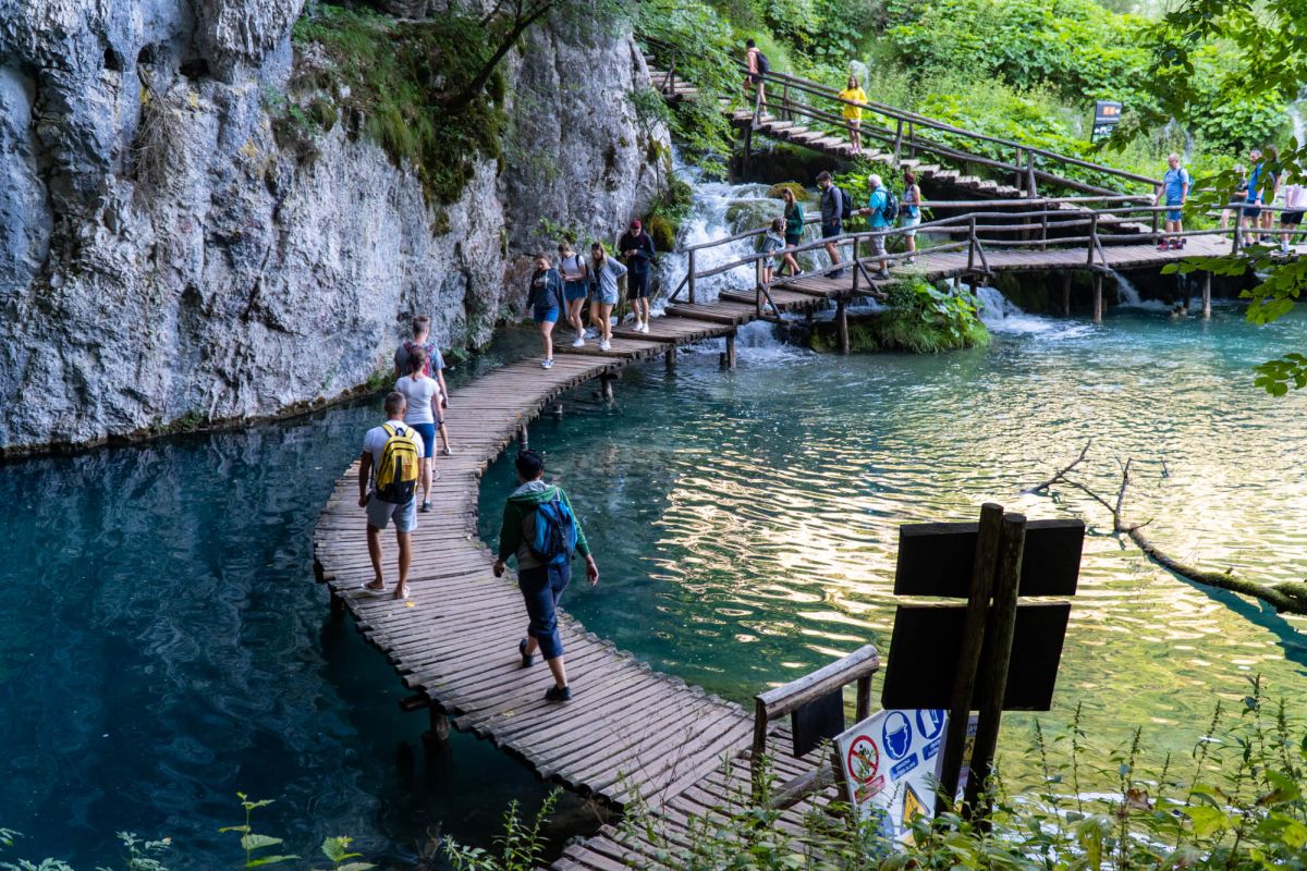 И, раз разговор зашел о посетителях, перейдем от прекрасного к насущному. Посетителей действительно очень много, они стекаются сюда со всего мира, несмотря на высокую стоимость билетов и даже карантин. По официальным данным, парк посещают более 1 000 000 человек в год! И, не трудно догадаться, что основной трафик приходится именно на летние месяцы (конкретно на август). В "часы пик" тут можно попасть в настоящую людскую пробку из желающих сделать селфи или фото в наилучшем ракурсе в самых красивых местах. Дабы этого избежать очень рекомендую пожертвовать сладким утренним сном и поспеть аккурат к самому открытию в 7:00. К 10 мы успели обойти буквально все, покататься на кораблике и, уже возвращаясь обратно, оглядывать ошалело беспрецедентную толпу, стремящуюся к сладким заповедным красотам, как дрозофилы к забродившему компоту. Жаркое балканское солнце к этому времени успело разогнать турбины до нешуточных оборотов, а подтекающая потом толпа, журчит вовсе не так заманчиво, как плитвицкие каскады, хоть и тоже незабываемо.