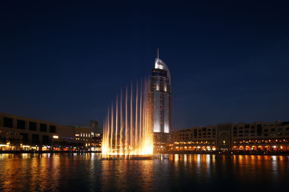 Недалеко от Бурдж-Халифа располагается вторая главная достопримечательность современного Дубая, называемая танцующими музыкальными фонтанами. Она представляет собой массивную территорию в 12 га, на которой размещены крупнейшие в мире музыкальные фонтаны. Их струя в высоту может достигать 150 метров. Во время проведения праздничных мероприятий рядом с фонтанами организуется лазерное шоу. Фонтаны переливаются всеми цветами радуги и начинают струиться в такт традиционной арабской музыке. Иногда они могут двигаться и под современные мотивы, в зависимости от проводимого мероприятия. За посещение данной достопримечательности не обязательно платить, потому что фонтаны видны на большом расстоянии. Но для открытия лучшего обзора человек может приобрести билеты в особую ложу, где можно с комфортом наблюдать за магией воды.