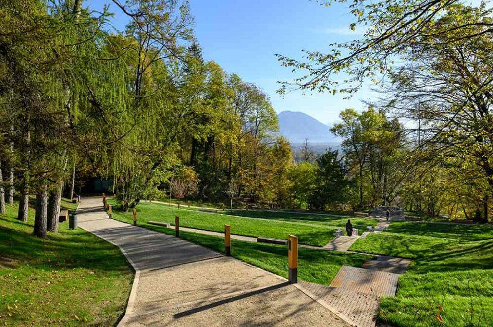 Институт культуры Бледа, управляющий Бледским замком, памятником культуры национального значения, также преобразил замковый парк. В соответствии с указаниями и разрешениями Института охраны культурного наследия часть склона к восточному порталу замка была укреплена, так как сильно пострадала от бури, повалившей несколько деревьев. Вся территория парка, состоящая из трех покрытых травой террас и каменных подпорных стен, была полностью перепланирована по планам ландшафтного архитектора Матея Кучины. Были укреплены поверхности за подпорными стенами и построена лестница, которая соединяет террасы и парковку с дорожкой, ведущей к замку от озера и от площади Словенски трг. «Мы сделали еще один шаг к комплексной реконструкции замка и его окрестностей», — сказал Матьяж Завршник, директор Института культуры Бледа. Археологи находились на этом месте во время работ, так как это археологически чувствительный район, наполненный интересными находками, свидетельствующими о культуре поселений на протяжении всей истории. «Поскольку археологи должны были исследовать местность и контролировать строительные работы, завершение проекта затянулось более чем на месяц. Однако их усилия не прошли даром, так как при раскопках были обнаружены могилы, каменные топоры, римские монеты, наконечники стрел, украшения и другие артефакты», — добавил Завршник. Парковое пространство было оборудовано скамейками и другой городской мебелью, на которой можно проводить мероприятия, церемонии и презентации, подходящие для этого уникального места, а находки будут выставлены в небольшом археологическом музее, который будет создан в здании у подножия Замковой горы.