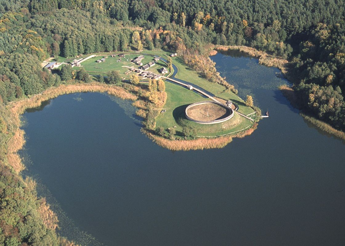 Уже в музее у меня появились первые вопросы, на которые я не находил ответа: почему старинные изделия были сделаны так тонко и искусно, что по сравнению с ними поделки из 20 века казались какой-то топорной работой. Но больше всего меня удивил музей под открытым небом. Там очень хорошо показан быт славян, живших в этих местах. Восстановлены остатки кузни и жилых помещений, пекарни и маленького храма, где шаманы проводили свои ритуалы. Посещение Гросс Радэна входит в учебную программу всех окрестных школ. Поэтому там часто можно встретить детей с учителями, рассказывающими о быте древних славян.Но разговаривая с работниками музея и учителями истории я так и не получил ответ на мой главный вопрос: почему поселение находилось на берегу озера, а оборонительная крепость - рядом на полуострове посреди этого озера. В случае нападения врагов крепость не спасёт, что собственно и произошло в 9 веке н. э. Она просто не приспособлена для обороны - на круглой насыпи стоит частокол, но внутри - ничего, только одна большая круглая воронка. Если же отойти чуть подальше от озера и взобраться на какой-нибудь холм, а их здесь много, то вся крепость видна как на ладони. Но если там нельзя оборонятся - то для чего же она была нужна? Надеюсь когда-нибудь найти ответ...
