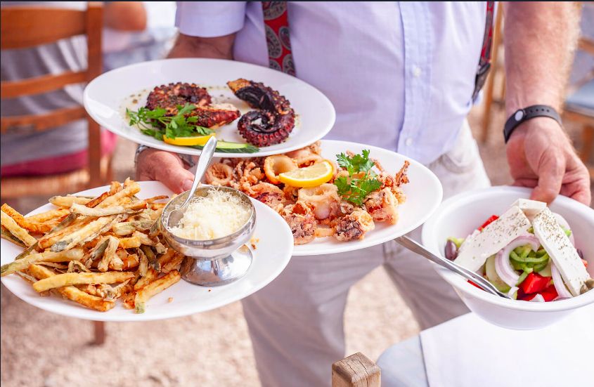 Обычно кто-то из группы берет на себя заказ для всех (вы можете добавить свои пять центов, если хотите чего-то особенного, например, саганаки, этого жевательного жареного сыра, который, по нашему мнению, всегда должен появляться). ). Иногда официант даже делает заказ для вас. Это зависит от особенностей дня или от того, обедали ли вы в ресторане раньше и официант знаком с вашими вкусами.