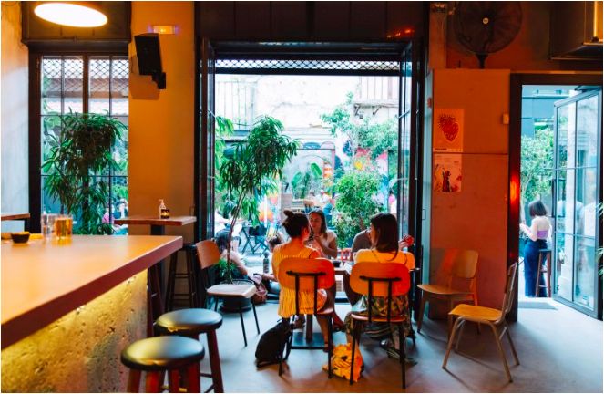 Затем мы вступаем в Monster Burgers & Beers. Нас встречает бородатый Гиоргос двухметрового роста и его партнерша Катерина, архитектор и в целом творческая душа. Покупатели описывают гамбургеры Monsters как «огромные», «вкусные» и «незабываемые». Их меню вдохновлено эпохой прото-металлической музыки, а их блюда названы в честь групп этого жанра. Следуйте золотому правилу и попробуйте фирменный бургер Monster с говяжьей котлетой, чили кон карне, соусом чеддер, сладким чили, майонезом, айсбергом, жареным яйцом и хрустящими цуккини, упакованными в булочку с кренделем. Ram Jam поставляется с чеддером, беконом, помидорами, острым джемом, карамелизированным луком, маринованной красной капустой и тертыми кубинскими рожками (острые кукурузные лепешки). Настоящая проблема, однако, состоит в том, чтобы выбрать сочетание картофеля фри с чоризо и халапеньо и пивного соуса. Веганы и вегетарианцы, не расстраивайтесь. Вы можете развлечься с Leaf Hound, который поставляется на веганской булочке с бургером Beyond, беконом на растительной основе, салатом из капусты, карамелизированным луком и маринованными огурцами. Что касается пива, выбирайте от партий критских пивоварен до пива, вдохновленного панком и металлом, из США и Великобритании.