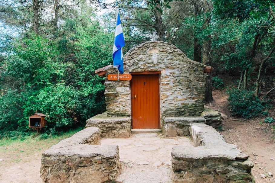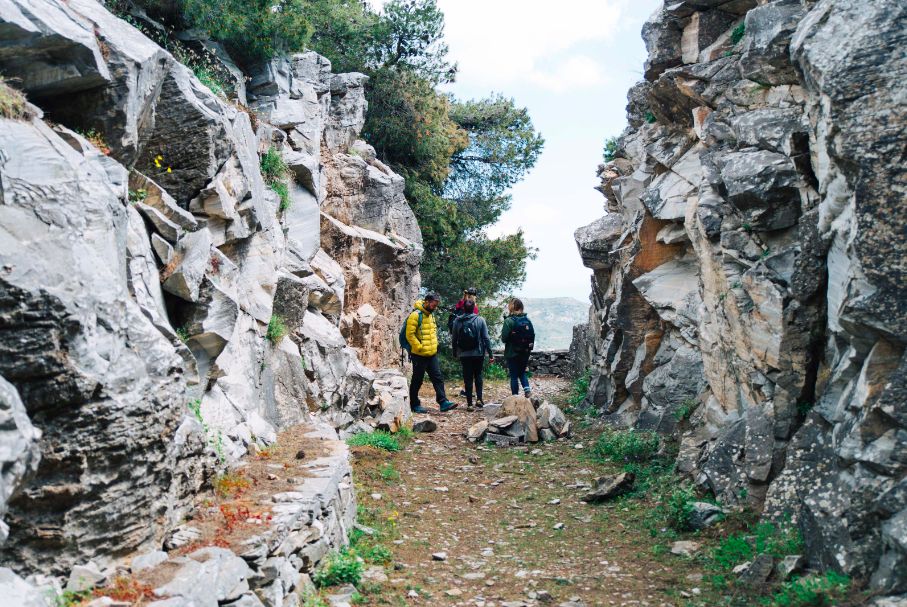 6-километровый маршрут туда и обратно по северным склонам горы Пентели, от Алулы, до Музея мрамора Диониса под открытым небом, с остановками в Пропет Илиас, Агиос-Лукас и Агиос-Никитас.
