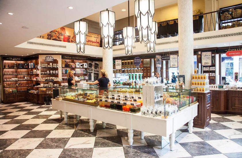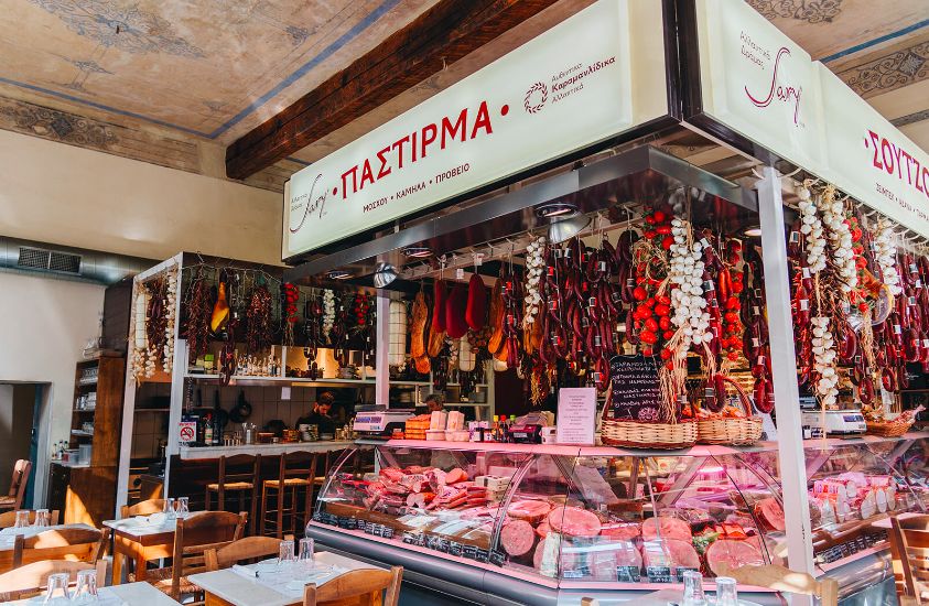 Если вы любите мясное ассорти и сыры, Karamanlidika tou Fani (Arapian) — это то, что вам нужно. Это один из моих любимых гастрономов в городе, а также ресторан, работающий в течение всего дня, где подают вкусные мезе. Их первый скромный магазин открылся в 1935 году и до сих пор находится на улице Еврипиду вместе с рестораном-гастрономом в нескольких шагах от него. Вы влюбитесь в исключительные мясные нарезки со всей страны, такие как их знаменитая пастурма и пастрами из Драмы (северная Греция), лоуза (вяленая свинина) из Тиноса, говяжий прошутто и острая говяжья салями из Корфу, а также черная свиная ветчина с трюфелями из Пиерии на севере Греции. Они поставляют более 300 видов сыра со всей Греции, от стамнотири из овечьего молока, приправленного трюфелем или мастихой, до ладотири с Закинфа, арсенико с Наксоса, выдержанной гравьеры из козьего молока с Кассоса, инотири с Иоса и моего любимого пастообразного сыра с плесенью с Мальтезоской фермы на Эвии. Обязательно загляните в их новый магазин на улице Эрмоу, где вы можете посмотреть, как повара пекут просфурнию, традиционные пироги, похожие на пиццу, в дровяной печи, пока вы попробуете ципуро (граппа в греческом стиле). В завершение попробуйте один из их анатолийских десертов, таких как восхитительный künefe, сиропообразная смесь, приготовленная из козьего молока и измельченной пшеницы.