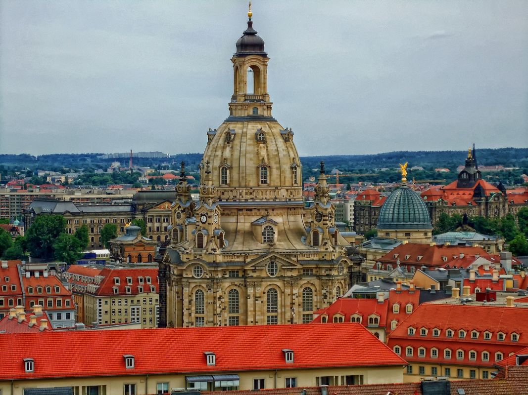 Самый известный символ Дрездена — перестроенная Фрауэнкирхе. Эта монументальная протестантская церковь была построена между 1726 и 1743 годами, разрушена 13/14 февраля 1945 года и перестроена в 1990-х годах. В 2005 году она была переосвящена. На окружающей площади Ноймаркт типичные остроконечные дома в стиле барокко были перестроены по частям. Спустя более полувека в город вернул себе старый центр.