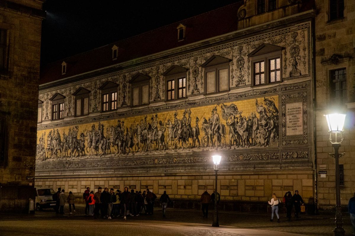 За Королевским дворцом Fürstenzug, или Шествие принцев, соединяет площади Ноймаркт и Шлоссплац. 101-метровая фреска, облицованная мейсенским фарфором, изображает правителей Дома Веттинов в конной процессии.