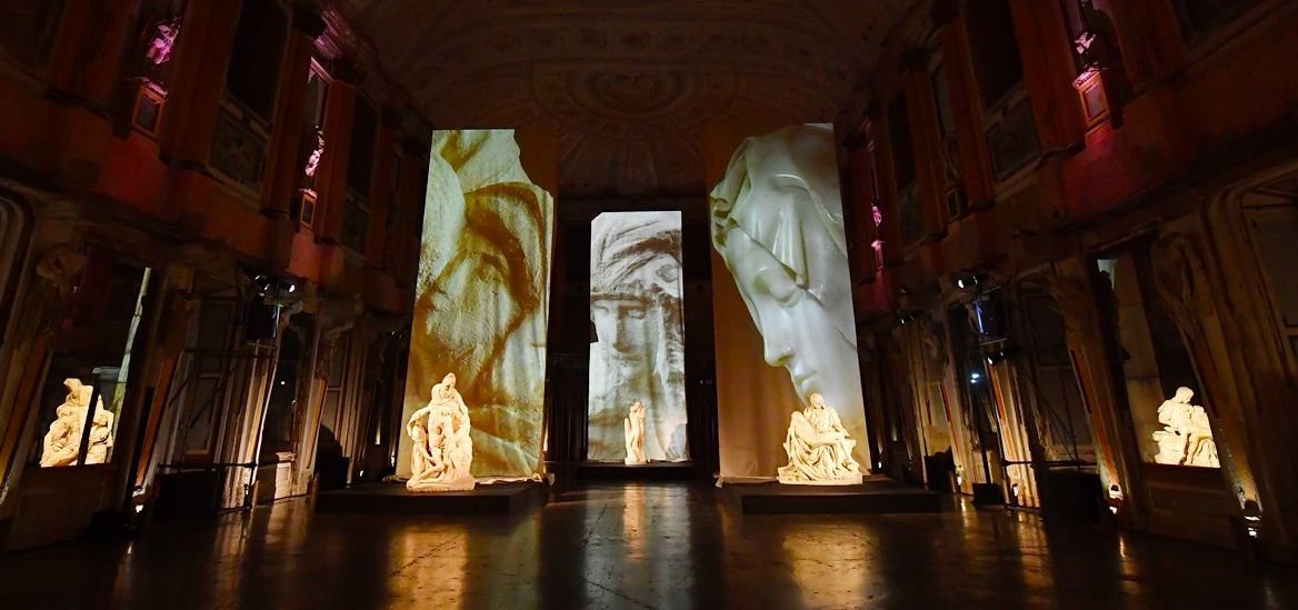 Слепки Пьеты Санта-Мария-дель-Фьоре во Флоренции, Пьеты Сан-Пьетро в Ватикане и Пьеты Ронданини Кастелло Сфорцеско в Милане, которые до сих пор использовались для замены оригиналов для исследований, тестирования выставочных залов и реставраций - теперь обрели новую жизнь и фокус благодаря мультимедийным проекциям и фотографиям, рассказывающим об их истории.