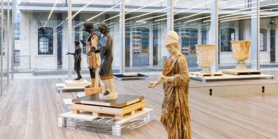 Колоссальные работы продемонстрировали диалог с современной архитектурой Фонда Прада в увлекательной и незнакомой обстановке: колоссальная статуя Константина, обычно выставленная во дворе Палаццо деи Консерватори в Кампидольо в Риме, реконструирована в Цистерне, оригинальные фрагменты которой в 4 веке уже были частью статуи, переделанной из более старой. Некоторые бюсты и саркофаги, напротив, расположены на столах вместо экранов компьютеров: древнее присутствует и находится среди нас.