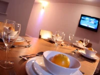 Апартаменты обставлены современной мебелью с самыми современными удобствами, включая настенные плазменные экраны, DVD плееры, беспроводной широкополосный Интернет и многое другое.