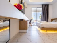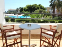Комната нам досталась очень просторная (№116) на первом этаже в первом корпусе с окнами на бассейн. Мебель староватая, но все чисто и аккуратно. Огромный балкон! Душевая кабинка очень маленькая, поэтому вся вода постоянно вытекала на пол и он был в лужах.
