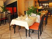 Ресторан отеля предлагает большое разнообразие венгерской и международной кухни, включая десерты, вино из Mőcsény, разливное пиво Pilsner Urquell и ароматный кофе. Наполовину крытая терраса ресторана открыта с весны до осени.