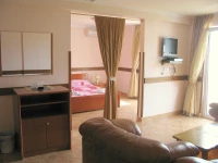 Suite apartment with large balcony consists of two rooms (living room and bedroom).