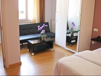 Когда открыли дверь в номер - обалдели: заходить было некуда! Номер размером с двухспальную кровать. Если занес дорожную сумку, войти можно только на кровать и лёжа. Если один человек в номере уже стоит - второму вставать просто некуда! Я видел маленькие номера, например в Париже, в Вене.. Но такого номера-ящика не было нигде! Да, ещё душевая кабинка - поддон размером 50х50 см, когда пытаешься за