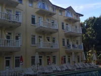 Отель Cenk Bey (Ценк Бэй) расположен в 5 км от центра города Фетхие, в 45 минутах езды от аэропорта Даламан, в окружении тропических садов, в 250 метрах от пляжа Чалыш. К услугам гостей открытый бассейн, ресторан на террасе и трансфер до аэропорта Даламан. Номера отеля оснащены кондиционером, балконом, гостиным уголком и ванной комнатой с туалетными принадлежностями и феном. Кроме того, в открытом бассейне отеля, окруженном шезлонгами и подушками, есть зона купания для детей. Также на территории отеля имеются теннисные корты и детская игровая площадка. Помимо этого, по утрам для гостей сервируется богатый завтрак "шведский стол". В ресторане подаются блюда местной кухни на обед и ужин. Здесь также есть просторная терраса с видом на сады.