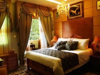 В кондиционированных номерах отеля Loona обращают на себя внимание классическая деревянная мебель, гардины с драпировкой и люстры.