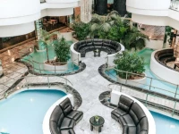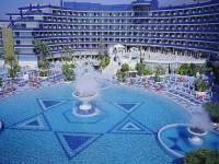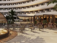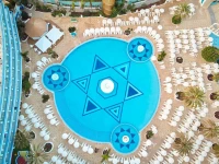 Дизайн отеля напоминает теплоту и интенсивность цвета Средиземноморского моря, с впечатляющим бассейном на 1 300 м2 с ослепительными фонтанами. Вокруг бассейна предусмотрена большая терраса с шезлонгами и лежаками, обслуживаемая официантами.