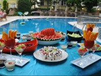 Food, drink and entertainment: Meals can be taken both inside the hotel restaurant and outside in the garden by the pools. There are plenty of lounge/bar areas and evening entertainment such as Turkish nights, BBQs and more.