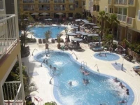 The hotel has one restaurant, serving buffet style international meals. There is a snack bar in the pool area. There are two free form swimming pools and a roof top pool all with sun terraces with sun beds and sun shades. Leisure facilities at the hotel include activities organised by the hotel’s animation team as well as sports, mini-club, evening shows and a disco..